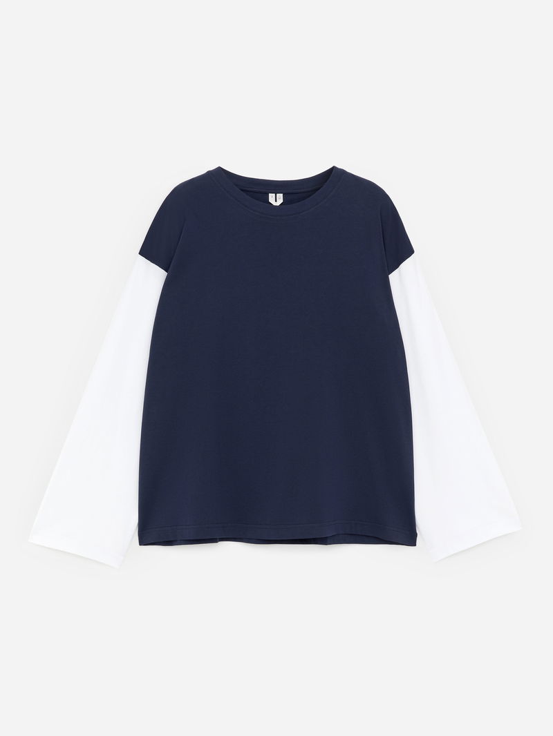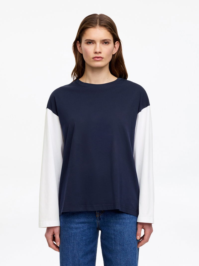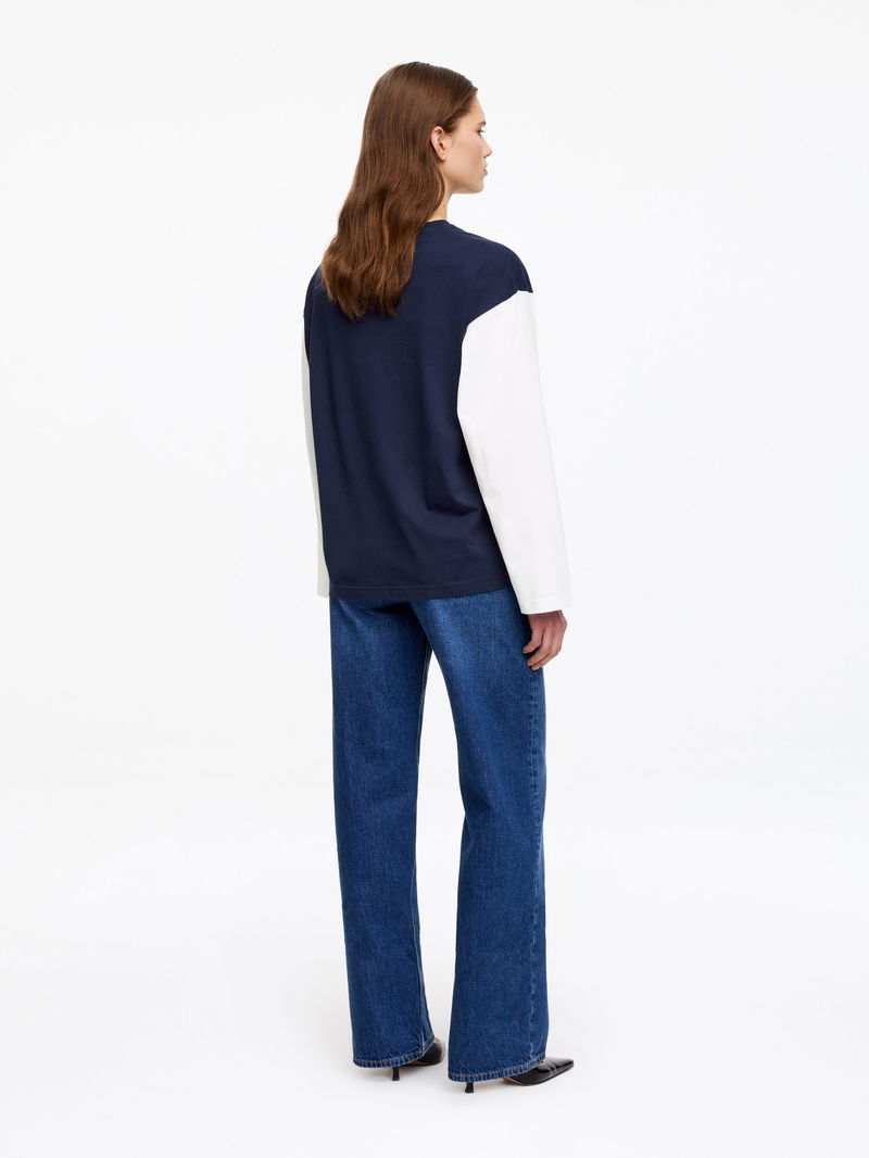 This oversized long-sleeve T-shirt is made from midweight cotton and washed for softness. Pairs with tailored trousers for a polished everyday look.
