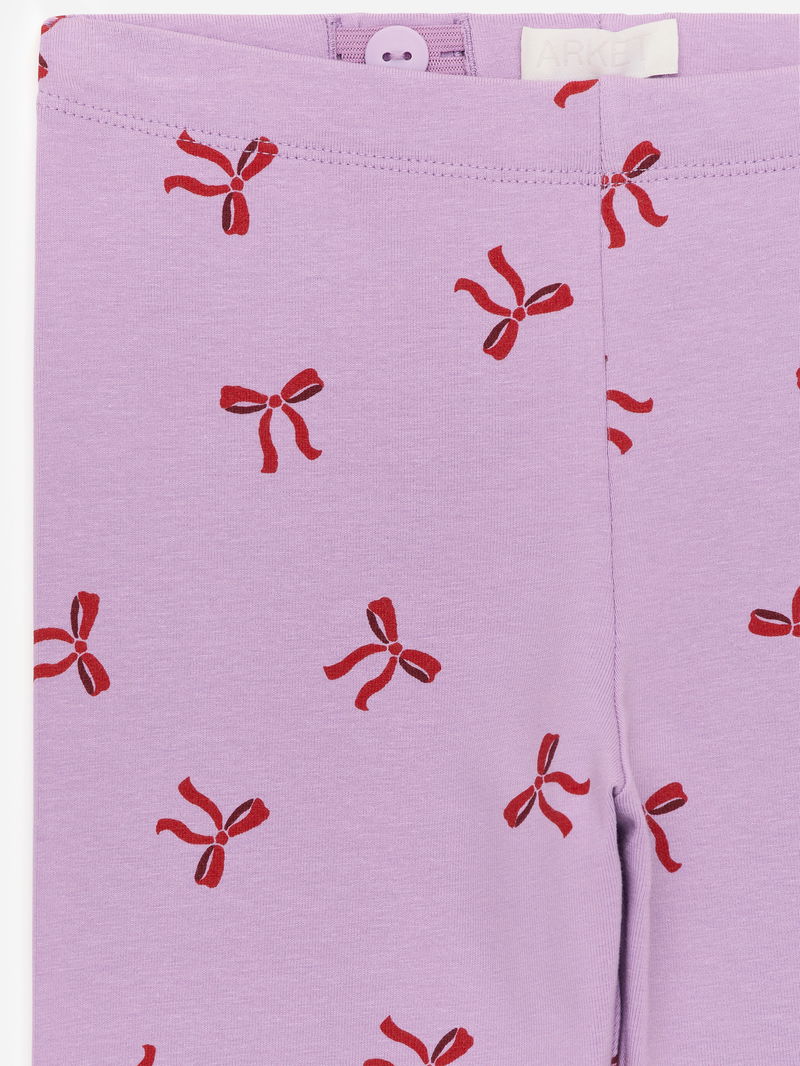 Leggings cut from soft single jersey fabric. Detailed with adjustable elastics at waist.