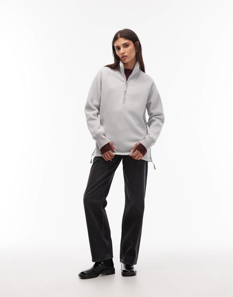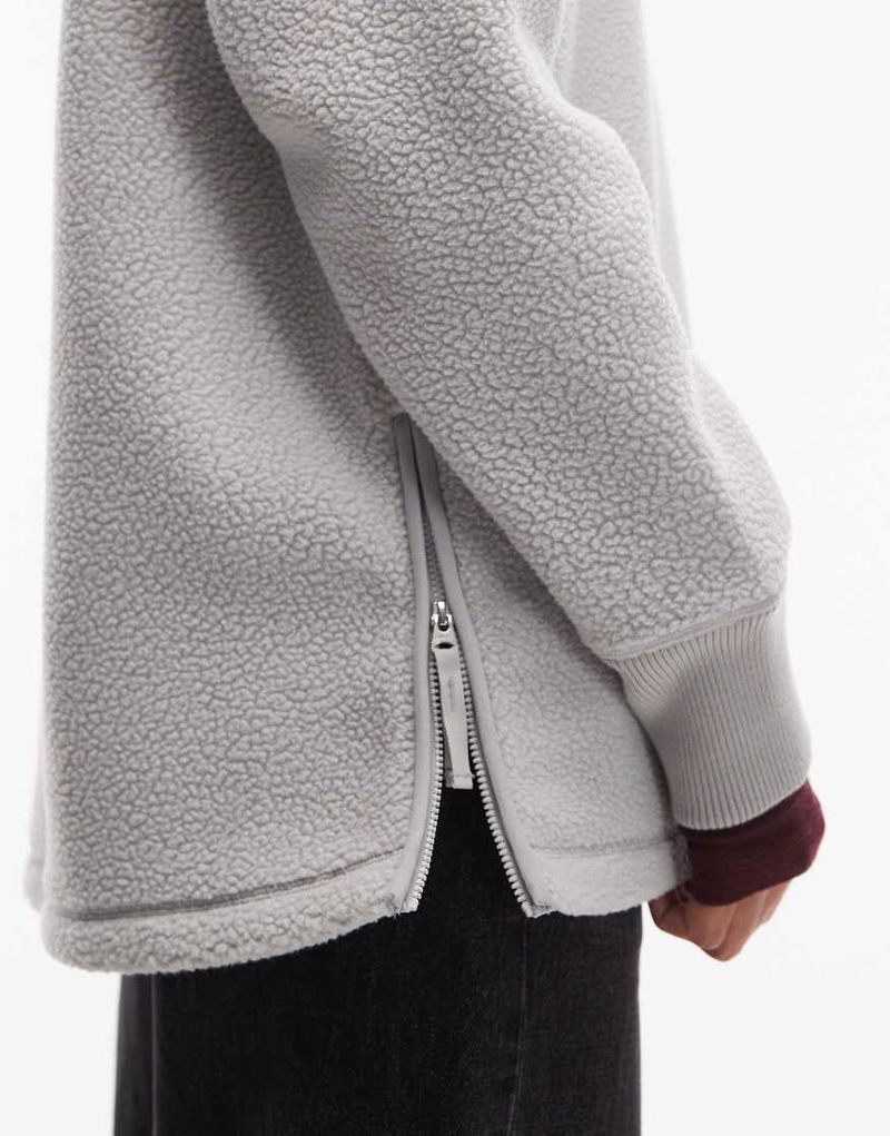 Pull On Fleece Jacket With Funnel Neck And Raglan Sleeves In Light Grey