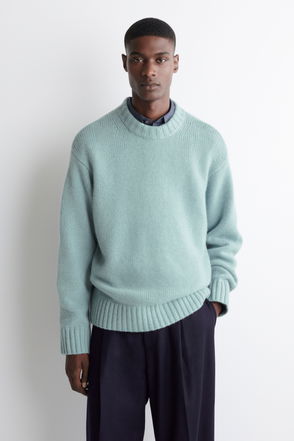 Crew-neck jumper plain-knitted from soft cashmere. Rib-knitted details. Regular fit. This style contains 100% GCS cashmere.