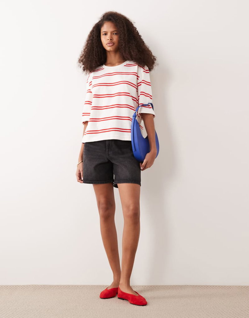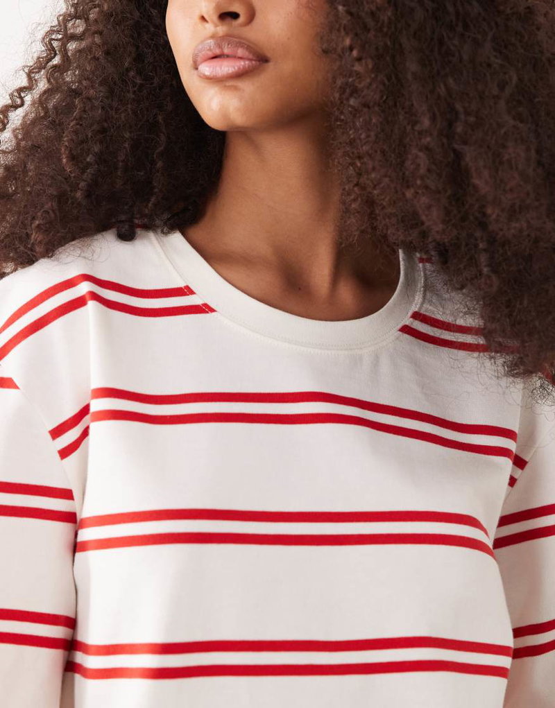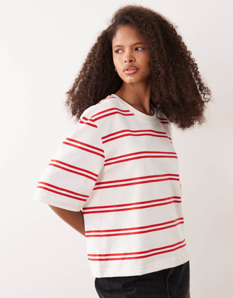Pure Cotton Heavyweight Boxy Fit T-shirt In Red Stripe