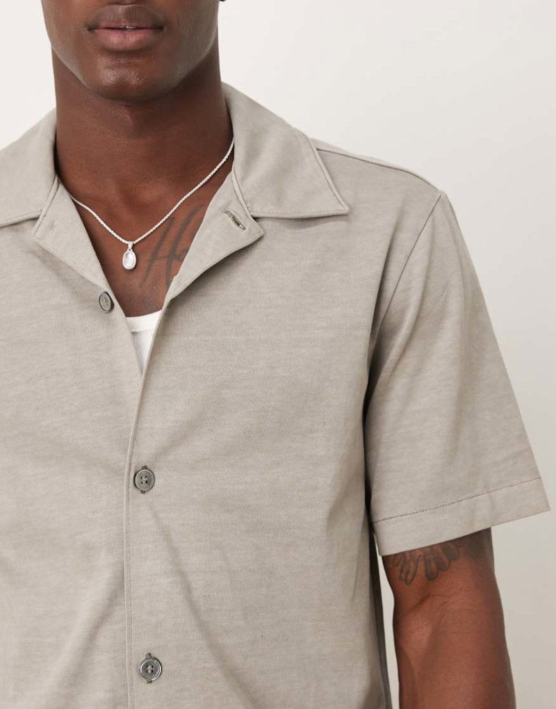 Pure Cotton Heavyweight Jersey Short Sleeve Shirt In Gray