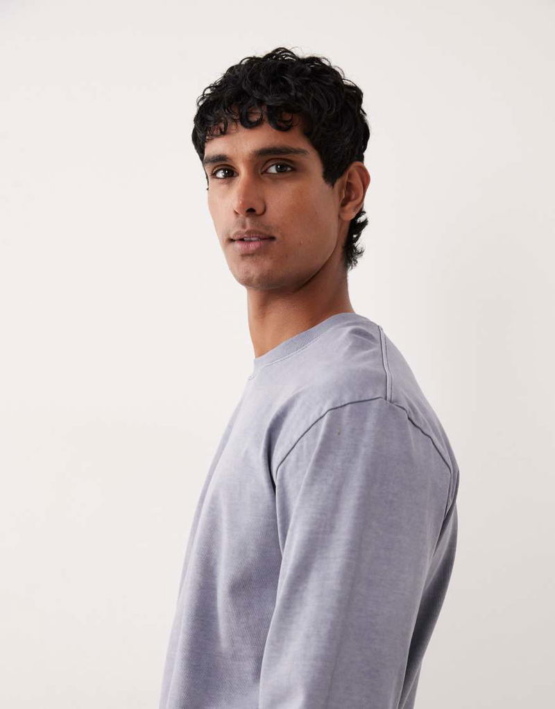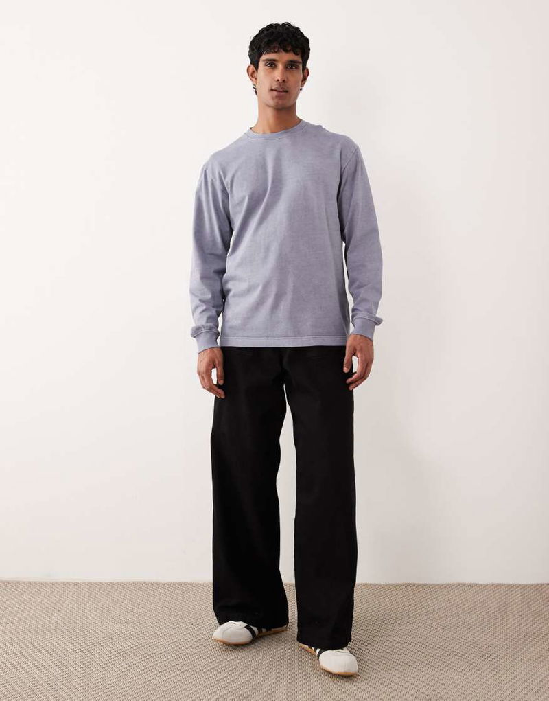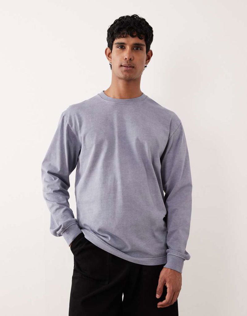 Pure Cotton Jersey Oversized Fit Long Sleeve T-shirt In Washed Blue