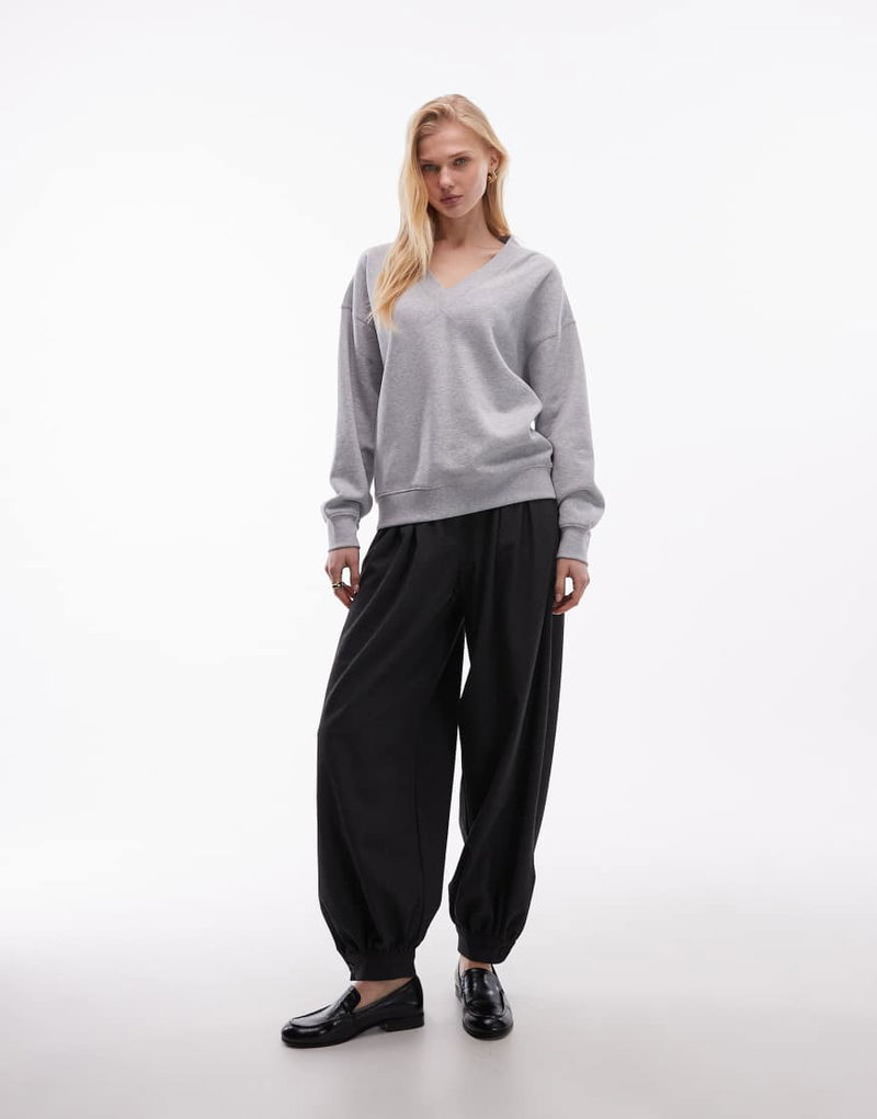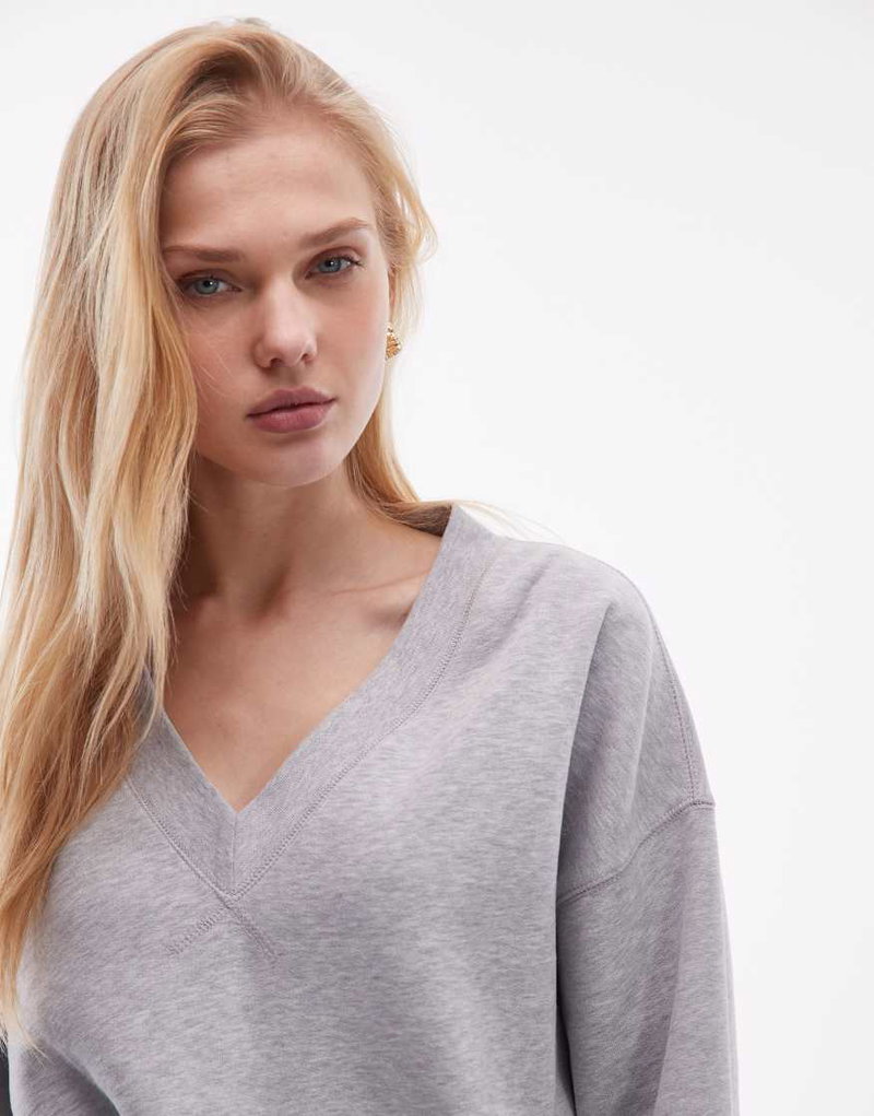 Pure Cotton Oversized V-neck Sweatshirt In Heather Gray