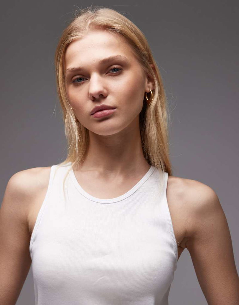 Rib Jersey Vest Top With Scoop Neck