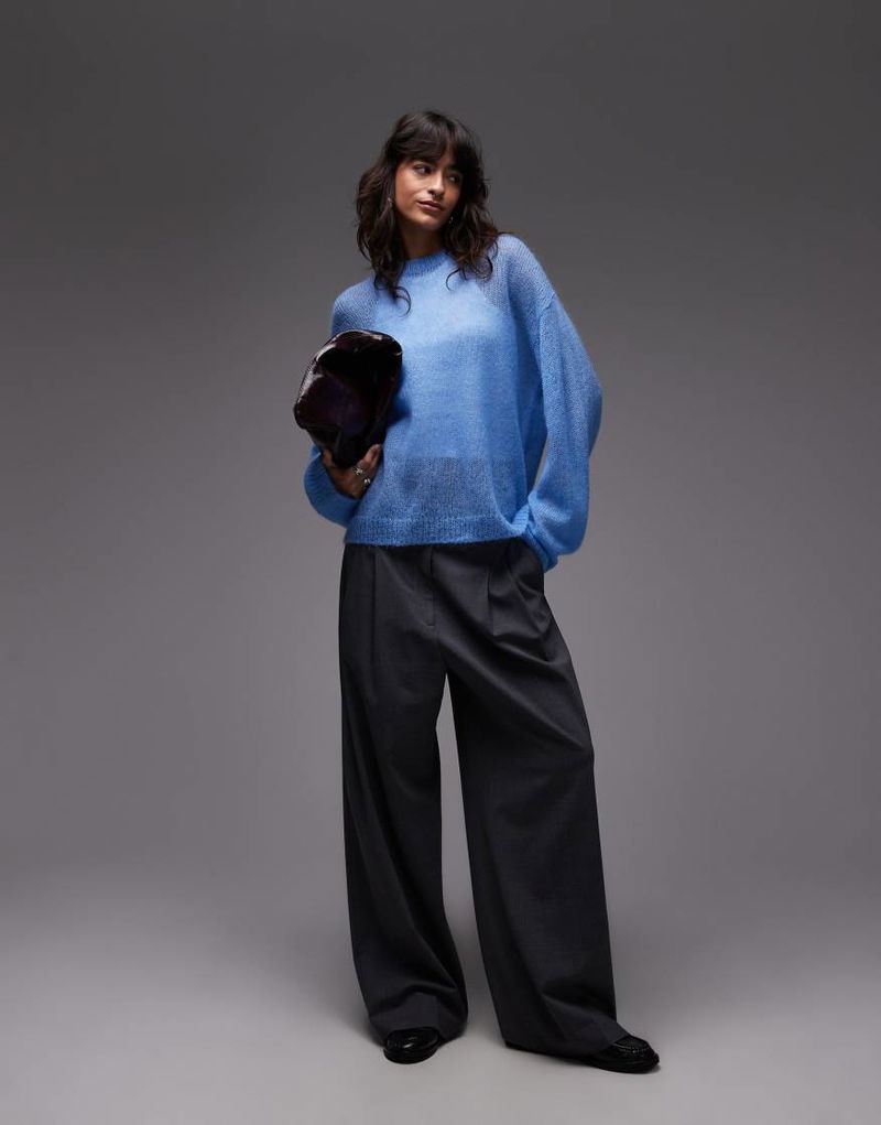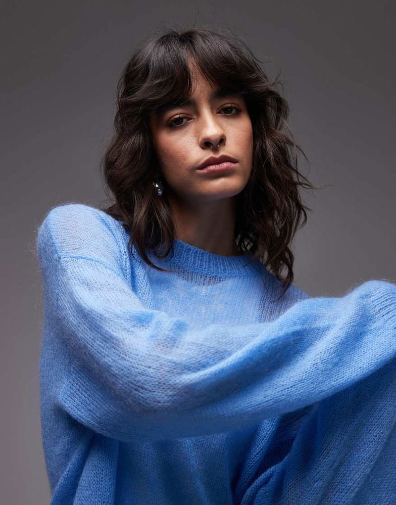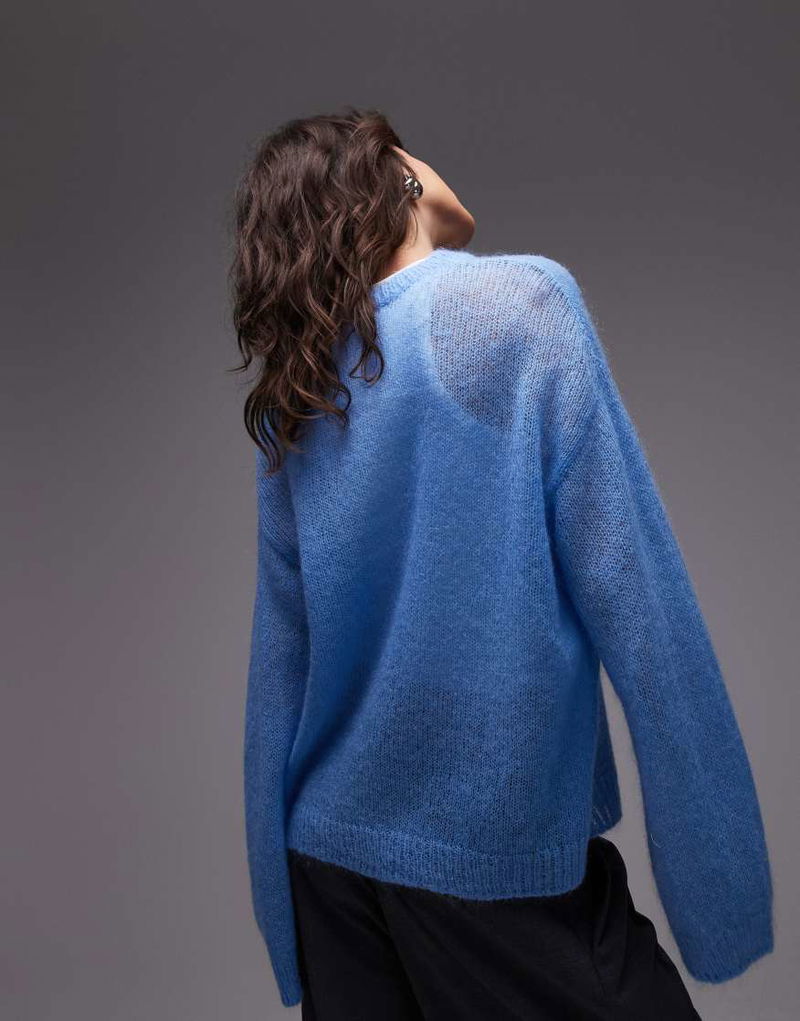 Sheer Mohair And Wool Blend Knit Sweater In Blue