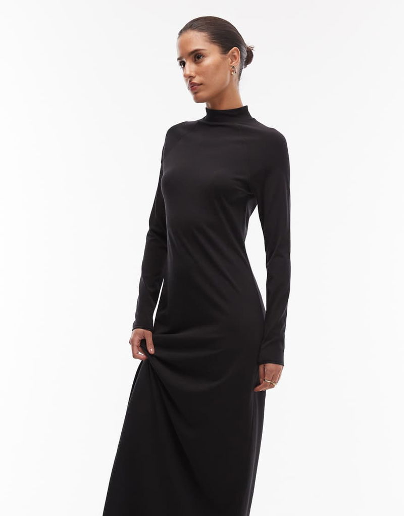 Soft Touch Long Sleeve Maxi Dress In Black