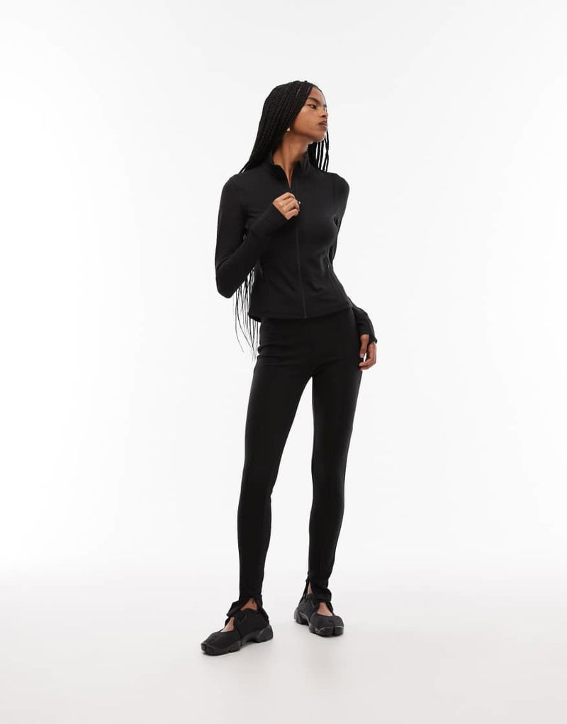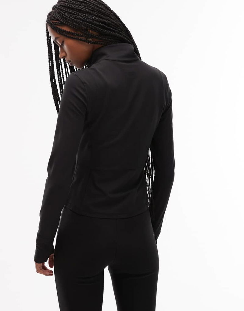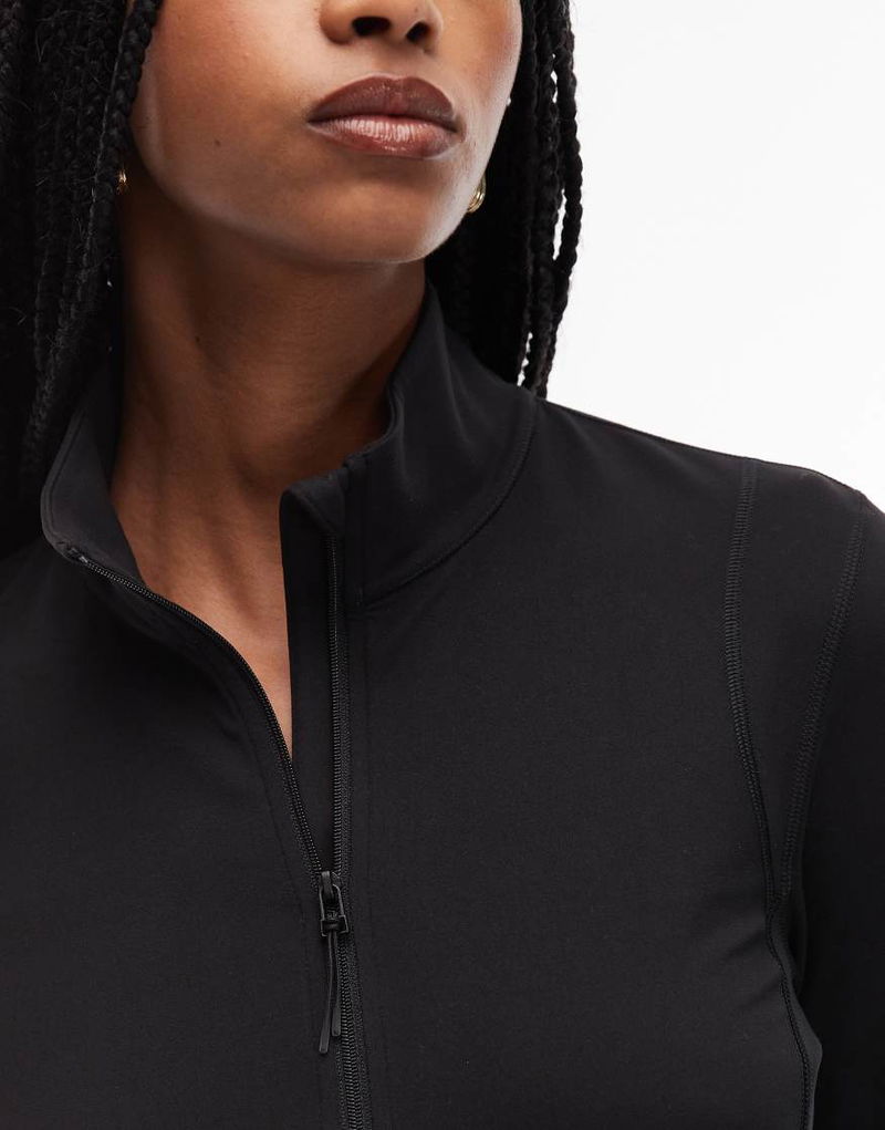 Sporty Fitted Panelled Jacket With Zip Front In Black