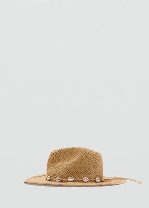 A paper straw hat worked in crochet with a structured shape and flat top.