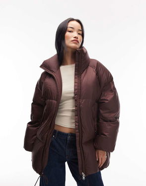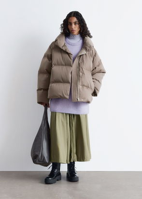 Puffer jacket filled with a blend of down and feathers. Features a stand collar, zip fastening at the front, and welt pockets with zip closures. Drawstring with metal stopper at the hem.
