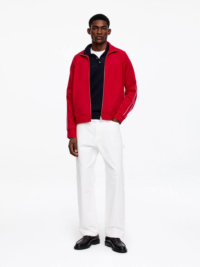 Our take on the WCT tracksuit jacket is crafted from a polyester/cotton blend and detailed with pipings in contrasting colour. Styled with a two-way metal zip at front, slanted pockets, and ribbed trims at collar, cuffs and bottom hemline. Part of set.