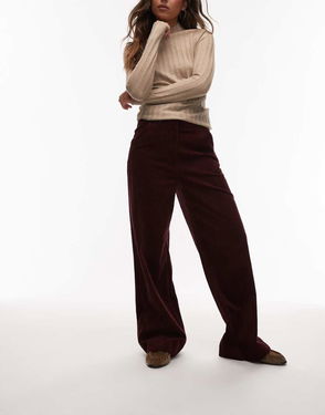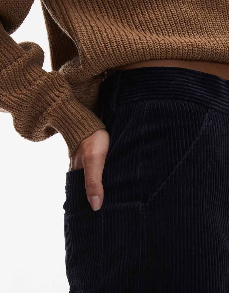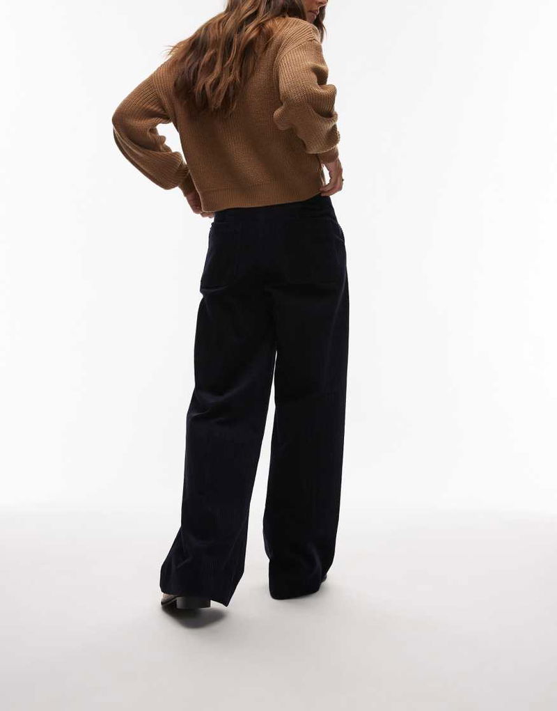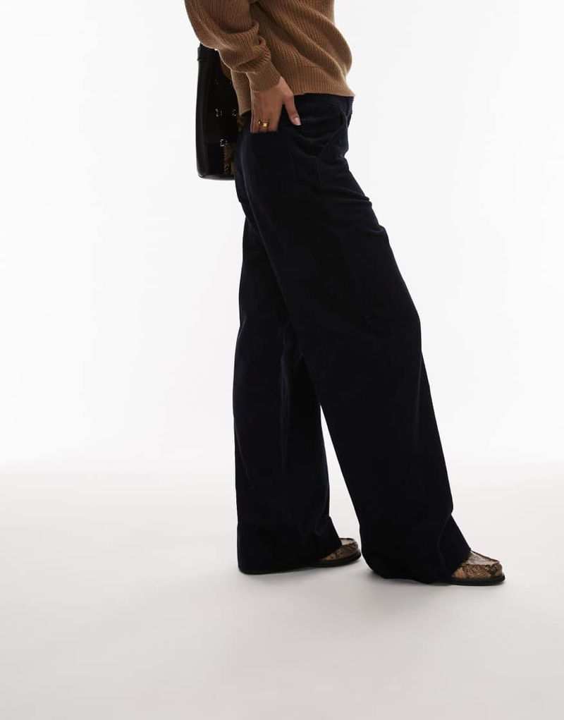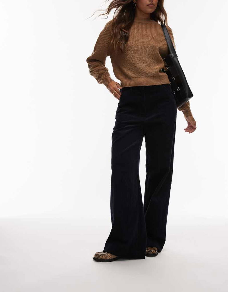 Wide Leg Cord Pants With Tailored Waistband In Navy Blue
