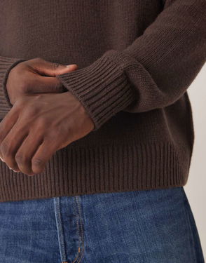 Wide Rib Knitted Jumper In Brown