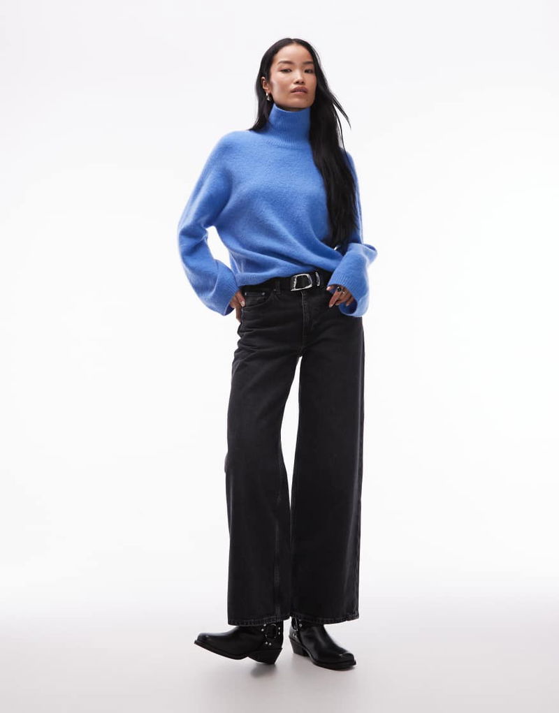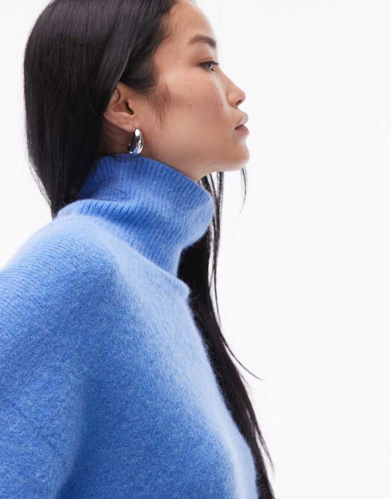 Wool And Alpaca Turtleneck Jumper In Light Blue