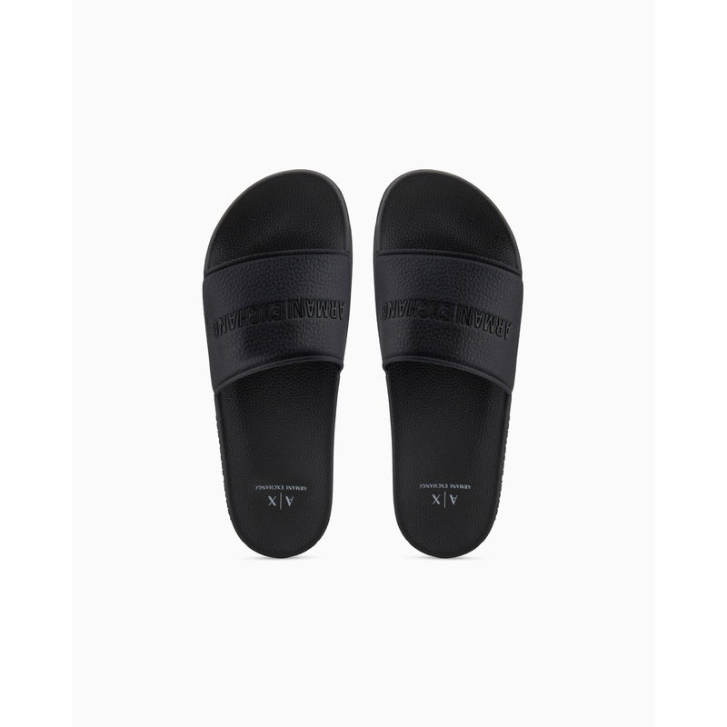 Minimalist design defines Armani Exchange Men's Pool Sliders, featuring sleek styling and practical poolside and beach functionality. The streamlined shape offers easy summer wear with brand detailing in this slip-on shoe.