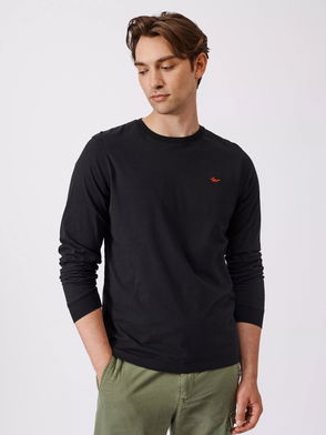 Aubin's long sleeve t-shirt redefines everyday wear: pure organic cotton shaped for comfort, finished with a subtle logo and striking the balance between smart and easy-going.