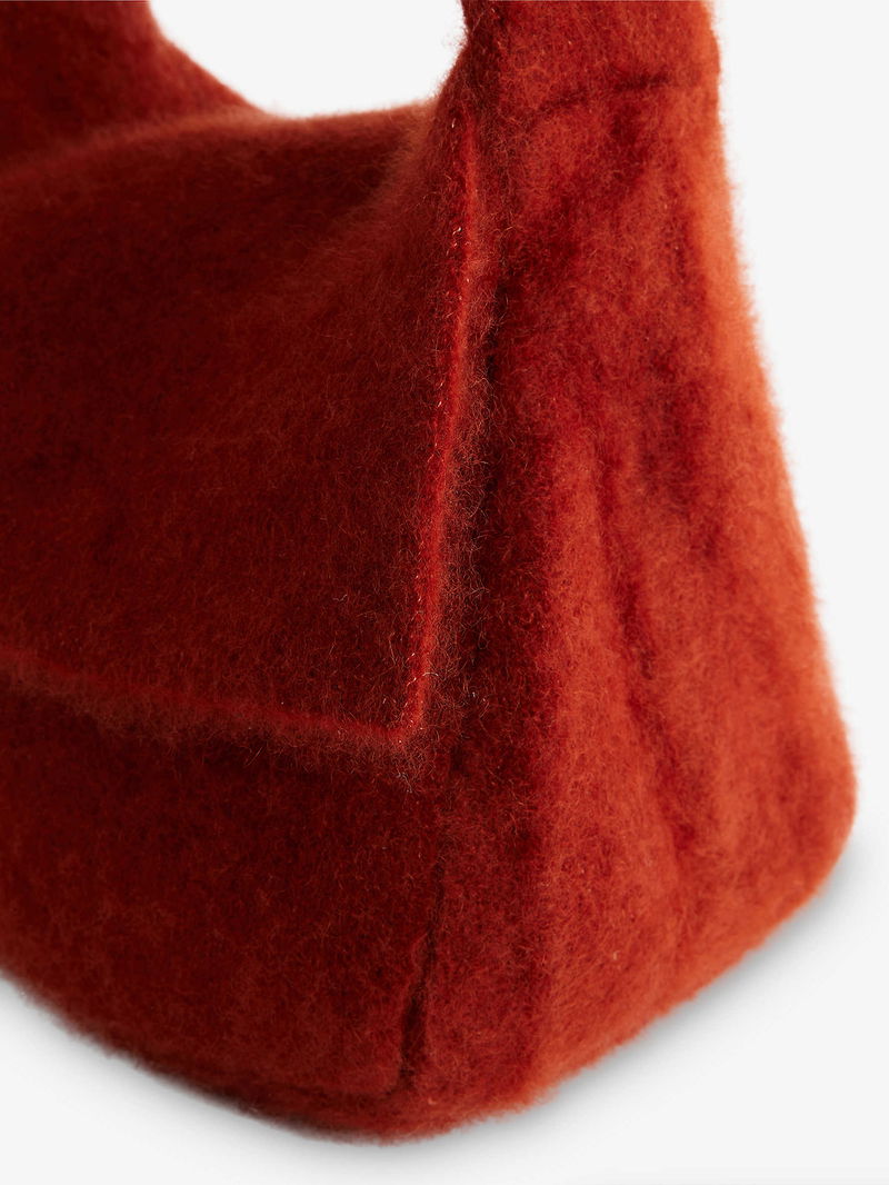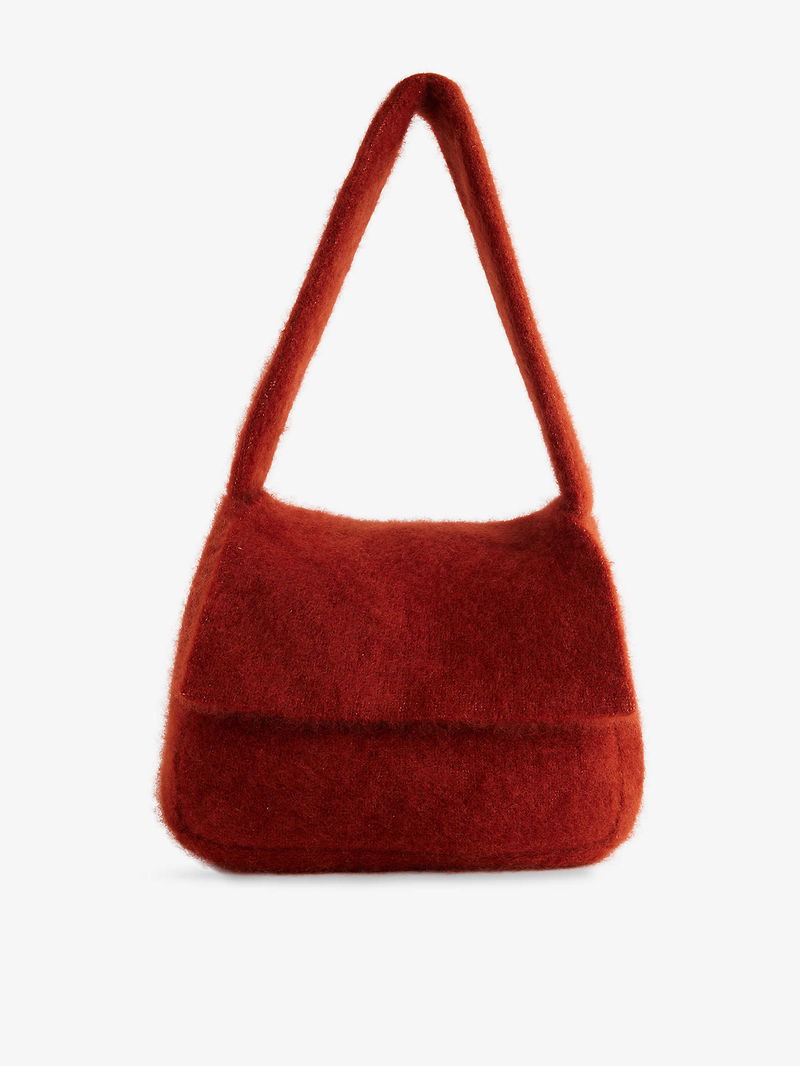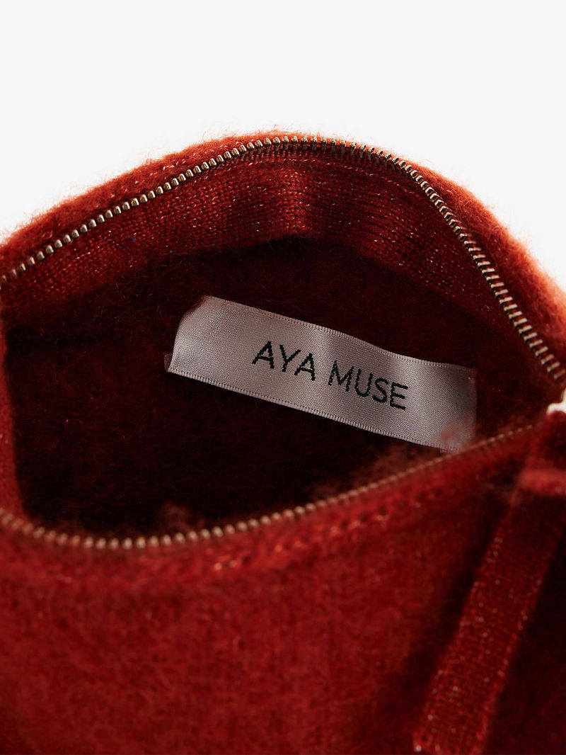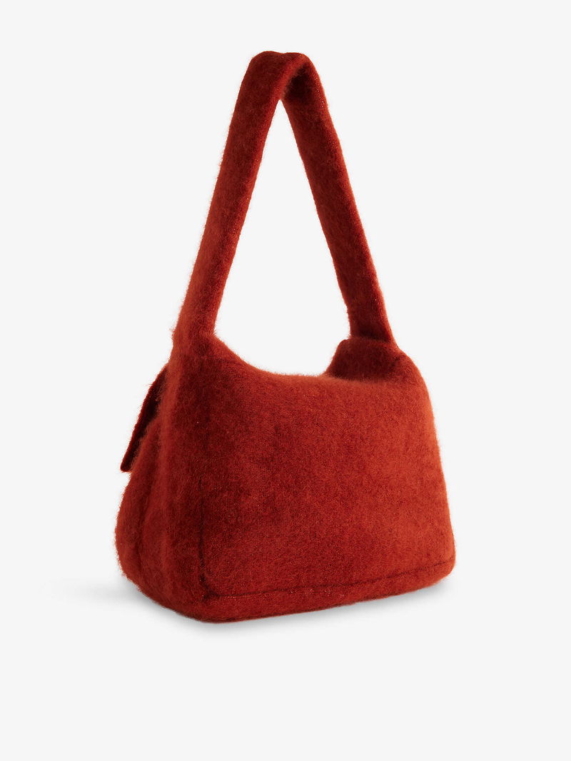 Aya Muse cashmere-silk bag. Soft shape, shoulder strap, one main compartment, brushed texture