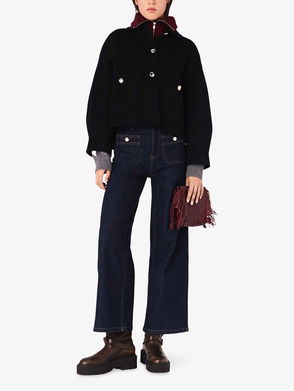 Embroidered-Trim Scarf Wool-Blend Jacket