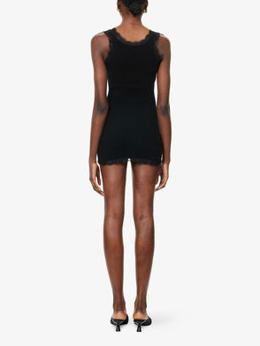 Lace-Embroidery Ribbed Cashmere And Cotton Mini Dress