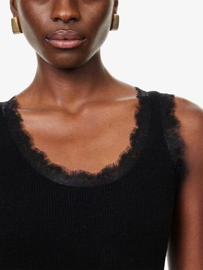 Lace-Embroidery Ribbed Cashmere And Cotton Mini Dress