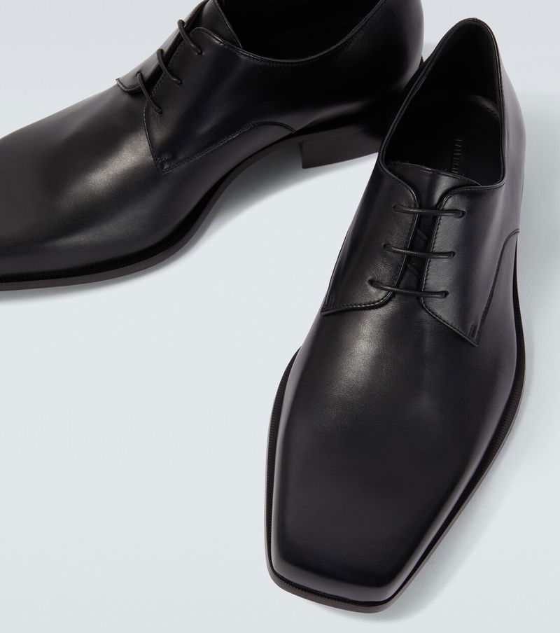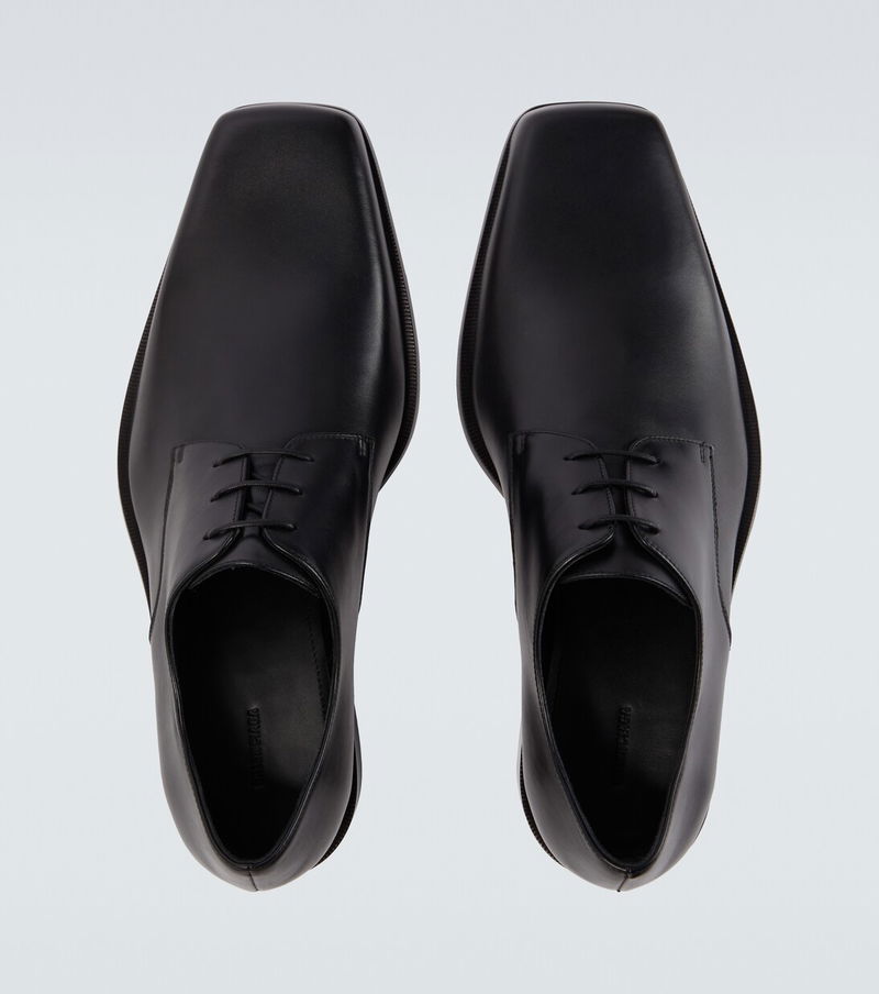 Innovation is at the heart of Balenciaga, which proudly presents its modern interpretation of fashion in every piece. Made in Italy from black leather, the Concorde Derby shoes are a sophisticated pair with tapered square-toe silhouettes.