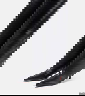 Amina Muaddi's Barbara knee-high boots embody Italian style. Their patent leather finish and pointed toes make them a standout addition to your wardrobe.