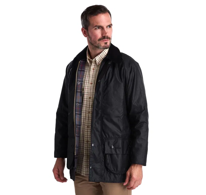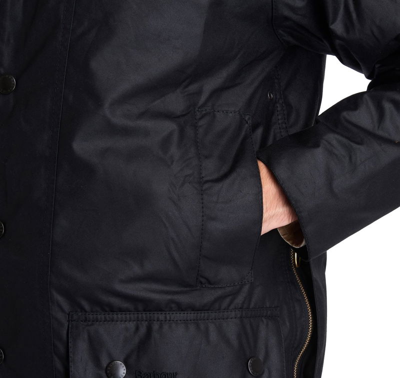 First available in 1983, the Beaufort jacket, designed by Chairman Dame Margaret Barbour, is one of Barbour's most iconic waxed jackets, featuring the useful full-width, lined, rear Pocket. Fully interactive with a detachable hood and liner, the Beaufort truly is the ultimate, classic all-year-round jacket. Made with medium weight 6oz Thornproof waxed cotton and featuring Velcro wind cuffs and the recognisable studded corduroy collar, the Beaufort will provide good protection in all weathers. The relaxed-fit jacket features a chunky two-way Barbour ring-pull zip and studded 'Stormfly' close front, two generous bellows pockets and two waist-height moleskin hand warmer pockets for everyday practicality. Inspired by French shooting jackets, the Beaufort is a shorter length than traditional jackets, and carries a large rear pocket lined with wipe-clean Nylon.While older Beauforts carry the Dress Gordon tartan, the modern Beaufort is lined with the Classic Barbour tartan, which is based on the tartan sett from the Barbour family's original home county of Ayrshire.