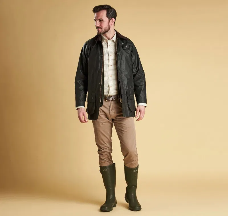 First available in 1983, the Beaufort jacket, designed by Chairman Dame Margaret Barbour, is one of Barbour's most iconic waxed jackets, featuring the useful full-width, lined, rear Pocket. Fully interactive with a detachable hood and liner, the Beaufort truly is the ultimate, classic all-year-round jacket. Made with medium weight 6oz Thornproof waxed cotton and featuring Velcro wind cuffs and the recognisable studded corduroy collar, the Beaufort will provide good protection in all weathers. The classic-fit jacket features a chunky two-way Barbour ring-pull zip and studded 'Stormfly' close front, two generous bellows pockets and two waist-height moleskin hand warmer pockets for everyday practicality. Inspired by French shooting jackets, the Beaufort is a shorter length than traditional jackets, and carries a large rear pocket lined with wipe-clean Nylon. While older Beauforts carry the Dress Gordon tartan, the modern Beaufort is lined with the Classic Barbour tartan, which is based on the tartan sett from the Barbour family's original home county of Ayrshire.