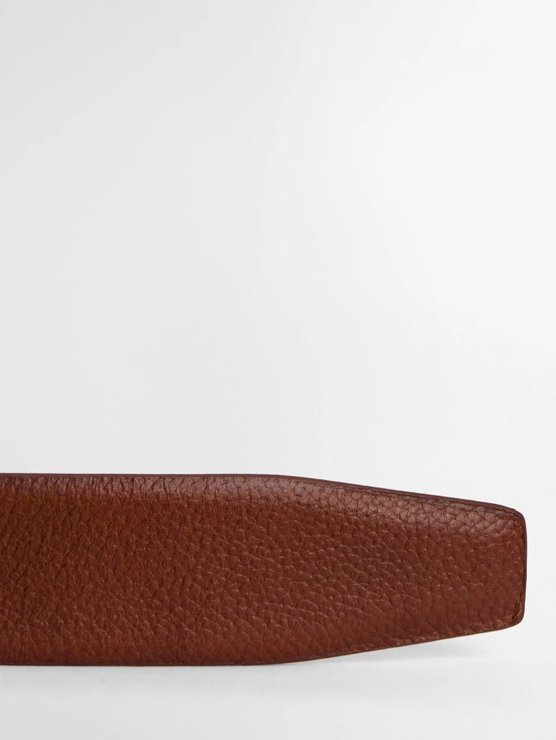 The Barbour Clyde Leather Belt is a sophisticated option for smarter occasions. Crafted in full grain leather, this refined accessory boasts an aged brass metal buckle embossed with a logo engraving, with a matching keeper for a signature look.