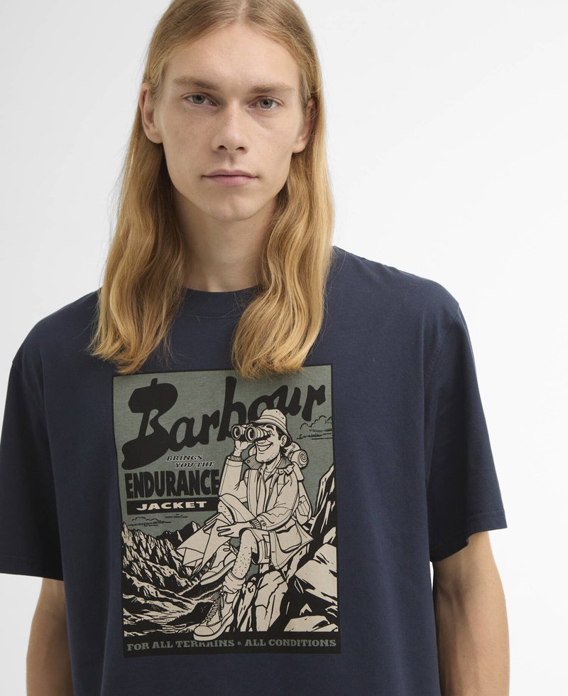 Celebrate heritage style with the Barbour Conditions Oversized Graphic T-Shirt. Crafted from 100% soft cotton for all-day comfort, this tee features a modern oversized fit and a stylish wide collar rib. The chest showcases a unique, archive-inspired graphic of the iconic Endurance jacket, offering a nod to Barbour's rich history and creating a standout casual piece.