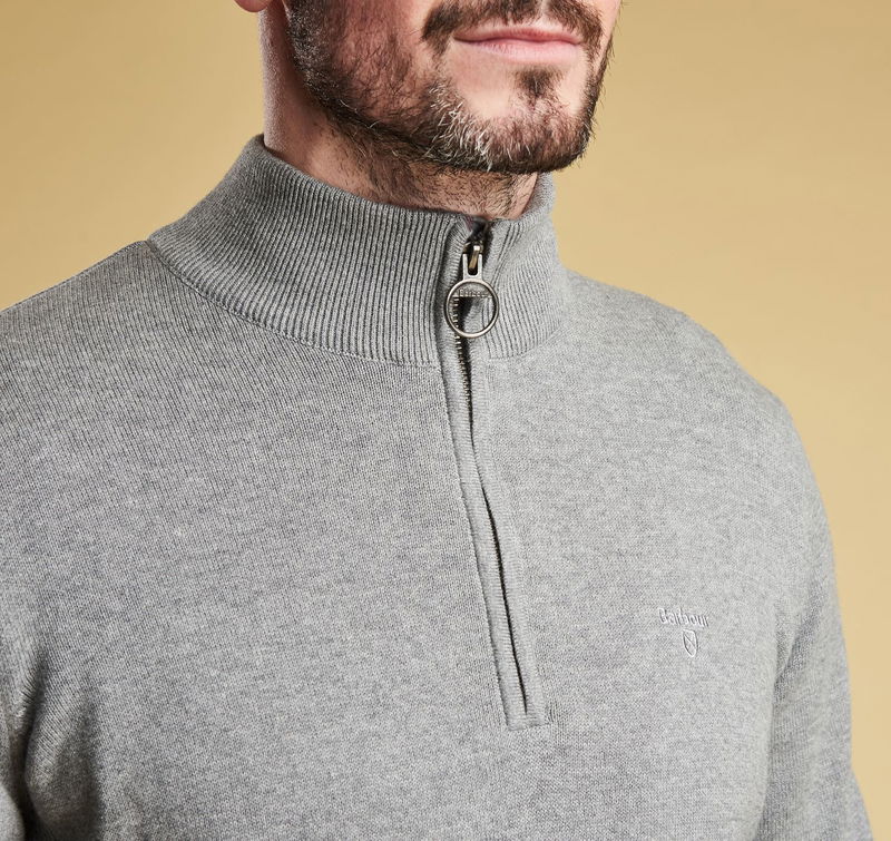 The Barbour Cotton Half Zip Sweater is a versatile layer trimmed with Classic Tartan at the inner placket. It's offered in a streamlined fit and detailed with a signature ring puller and tonal logo and shield embroidery at the chest.