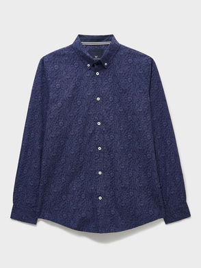 Cotton Regular Fit Washed Overshirt, Navy
