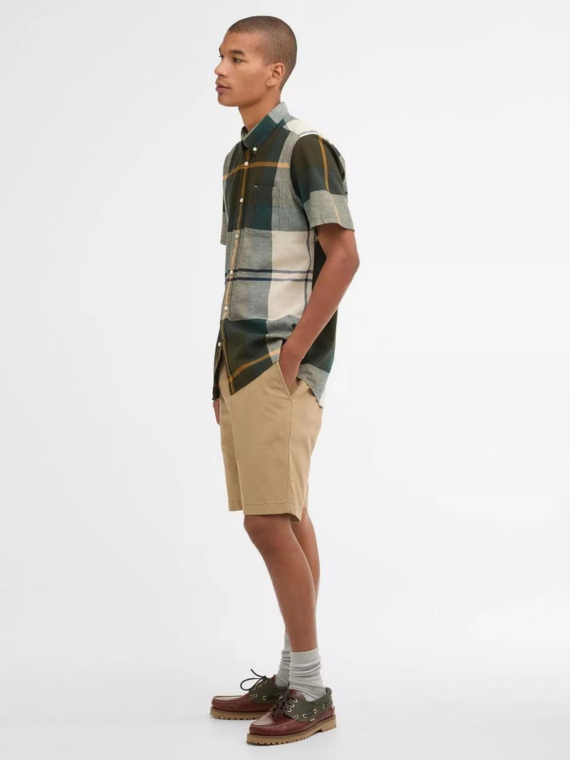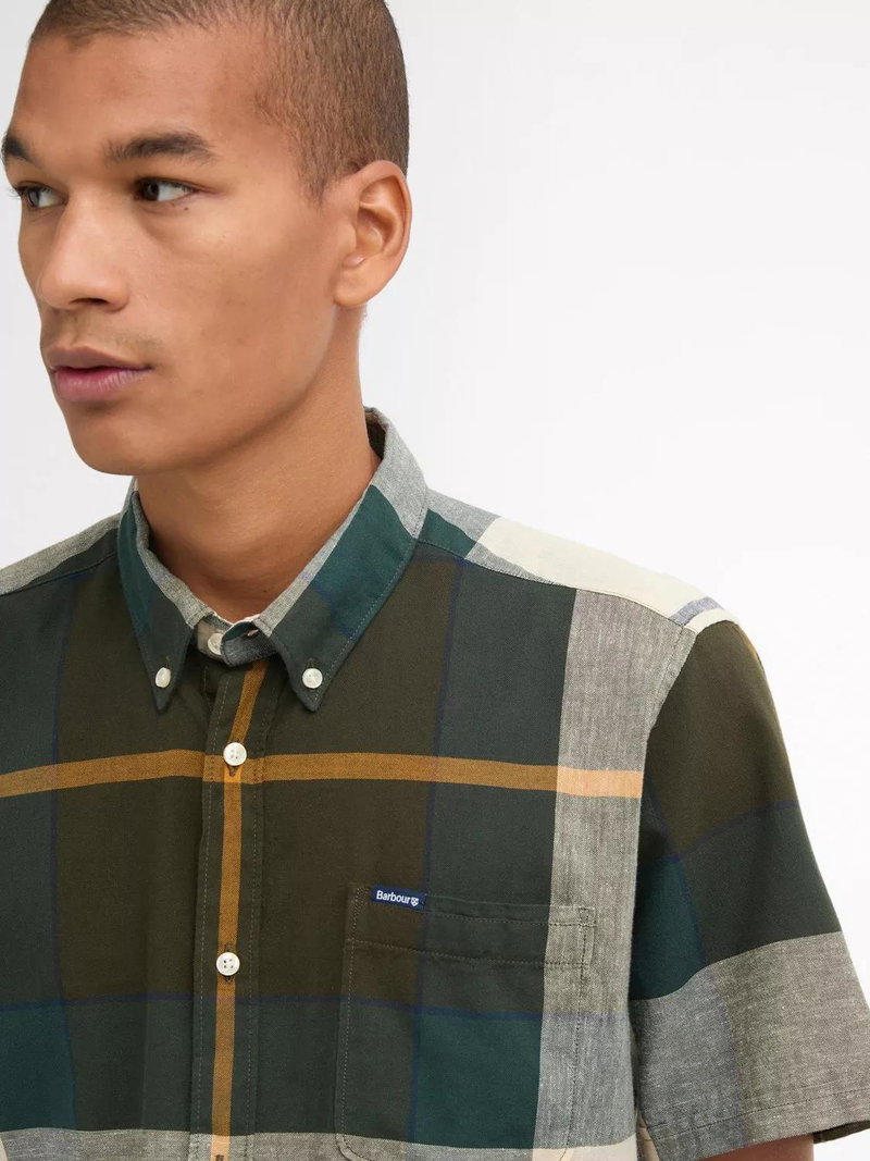 The Barbour Douglas Short Sleeve Shirt boasts a large scale tartan for an authentic wardrobe staple. Showcasing a button down collar, this shirt is crafted from a cotton and linen blend for premium comfort and is finished with a Barbour and Shield branded label to the left chest pocket.