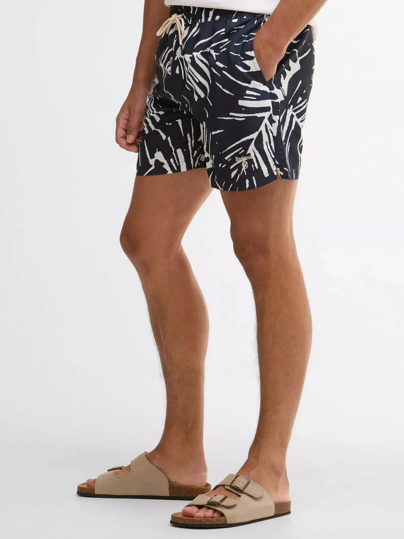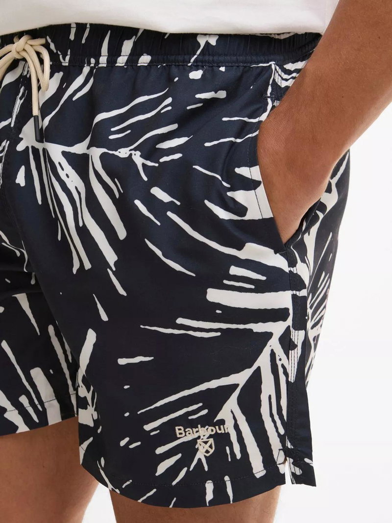 The Barbour Edenwood Swim Shorts feature a bold, oversized leaf print, these shorts are designed to stand out by the pool or on the beach. The regular fit and adjustable drawcord waistband ensure total comfort, while practical side and back pockets keep essentials close. A subtle Barbour and Shield embroidery on the leg adds a final touch of heritage quality.