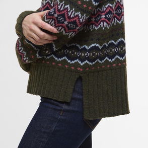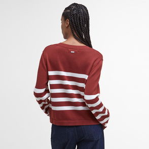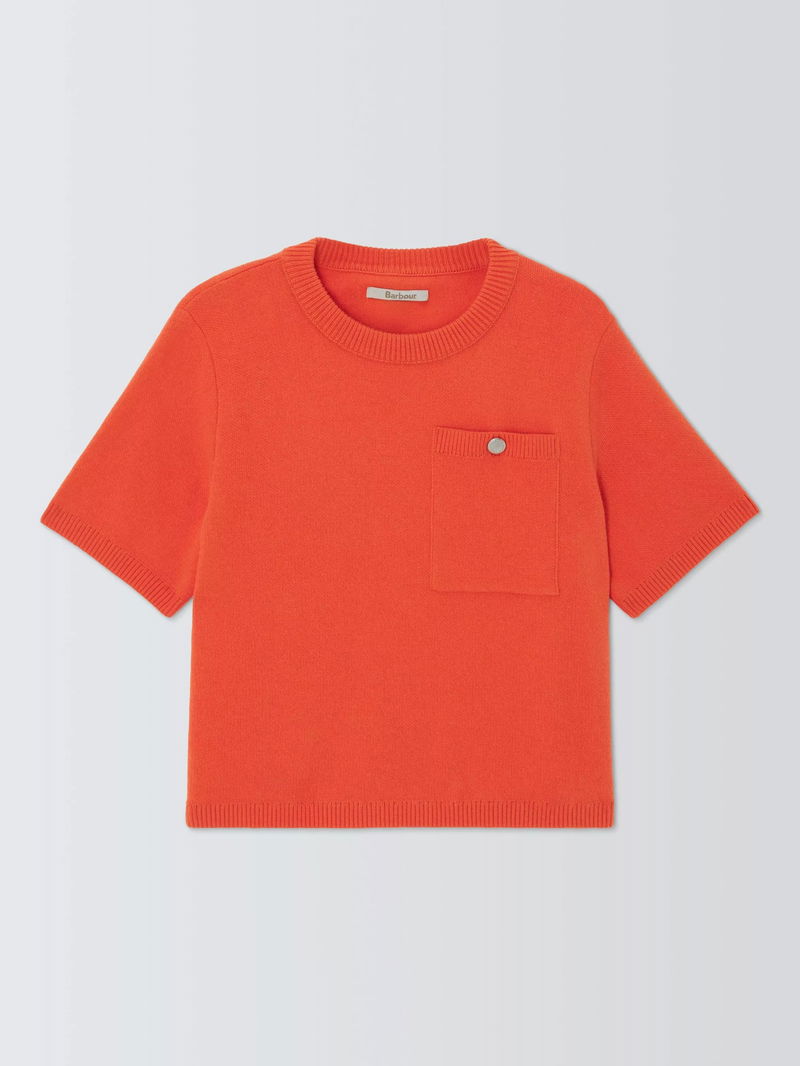 The Barbour Esther Crew Neck Short-Sleeve Jumper is a stylish, textured layering piece. Crafted in a cotton jacquard knit, it features a relaxed boxy silhouette, ribbed trims, and a patch pocket with a Barbour-branded button for subtle detailing.