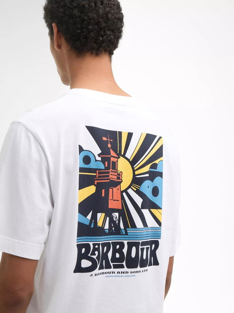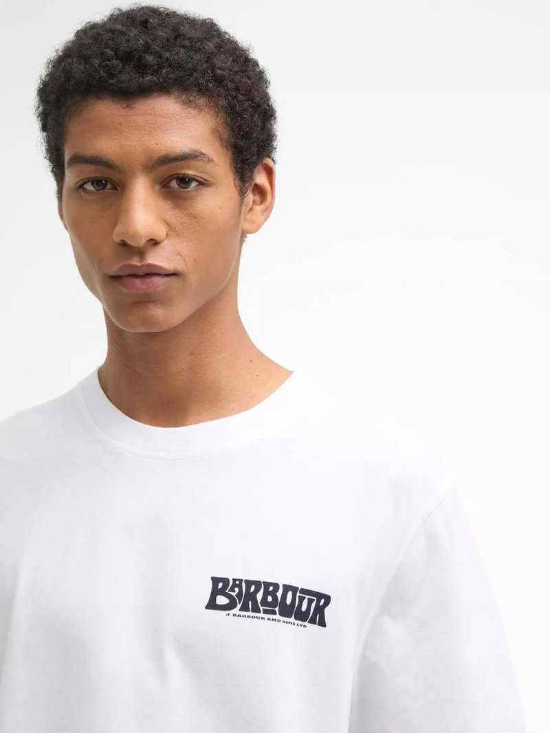 The Barbour Frome Relaxed Graphic T-Shirt combines casual comfort with bold branding. Made from 100% soft cotton, it features a relaxed fit with a small Barbour logo on the chest and a large, statement graphic on the back. Perfect for everyday wear, this T-shirt adds a heritage-inspired edge to your casual wardrobe.