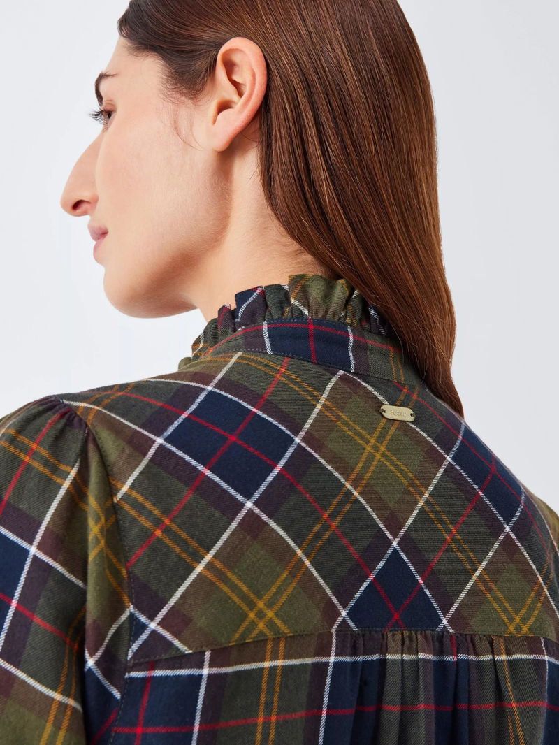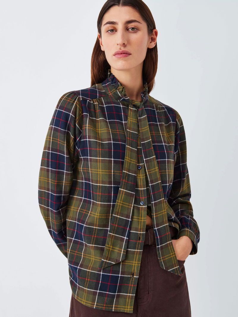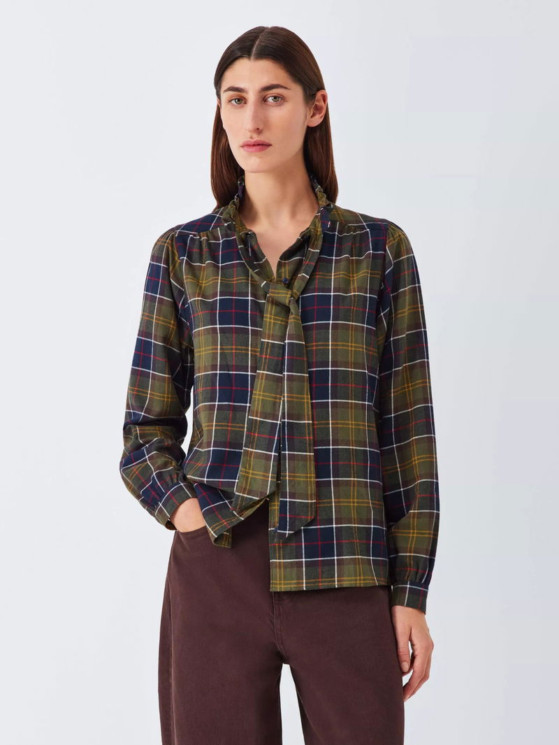 Gabriella Tartan Tie Neck Shirt, Green/Multi