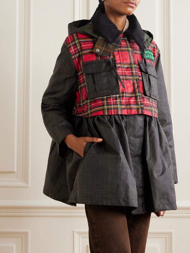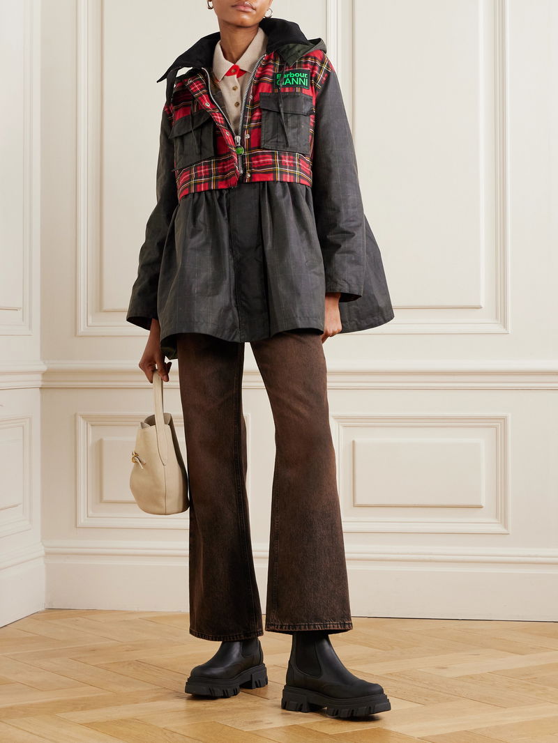 You’re bound to reach for Barbour x GANNI's jacket often thanks to its convertible design – the peplum hem zips off, transforming it to a cropped style. It's made from checked waxed cotton with a corduroy collar and is detailed with a combined logo.