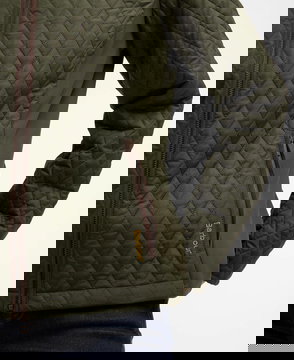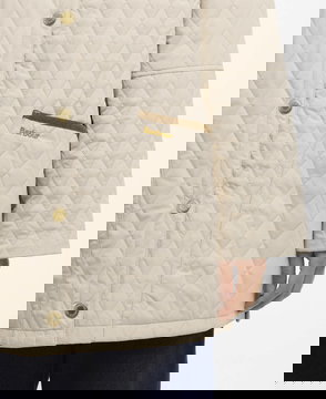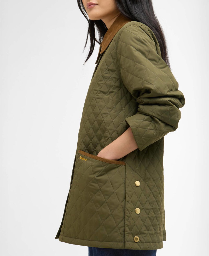 The Barbour Goldmire Quilted Jacket reimagines the classic Liddesdale with an elevated, modern touch. This longer silhouette features contrast quilting across the body, sleeves, and pockets, complemented by oversized patch pockets with needlecord binding. Finished with a signature tartan buggy lining, it’s a timeless blend of heritage style and contemporary sophistication.