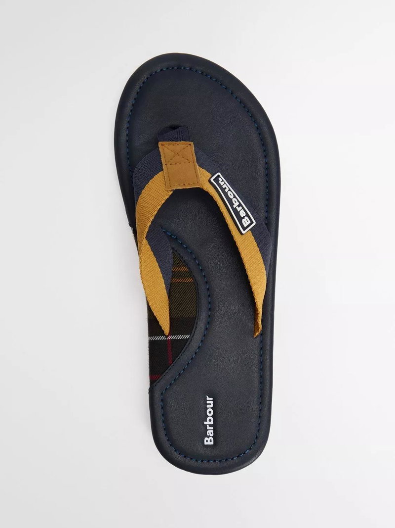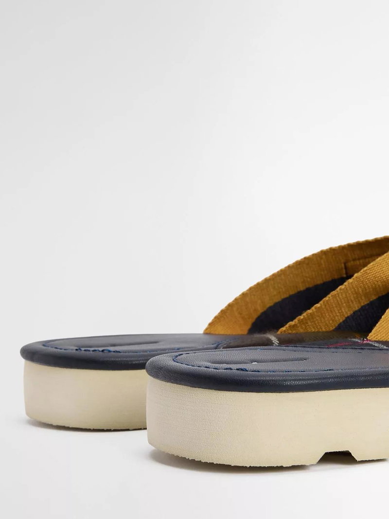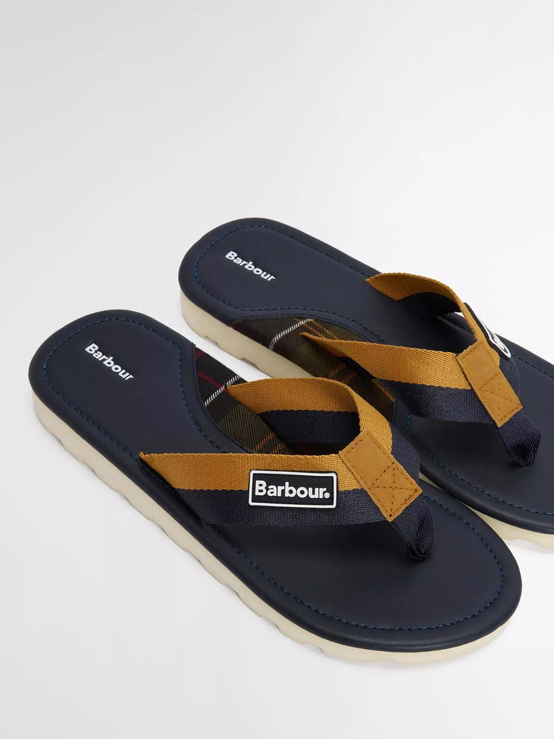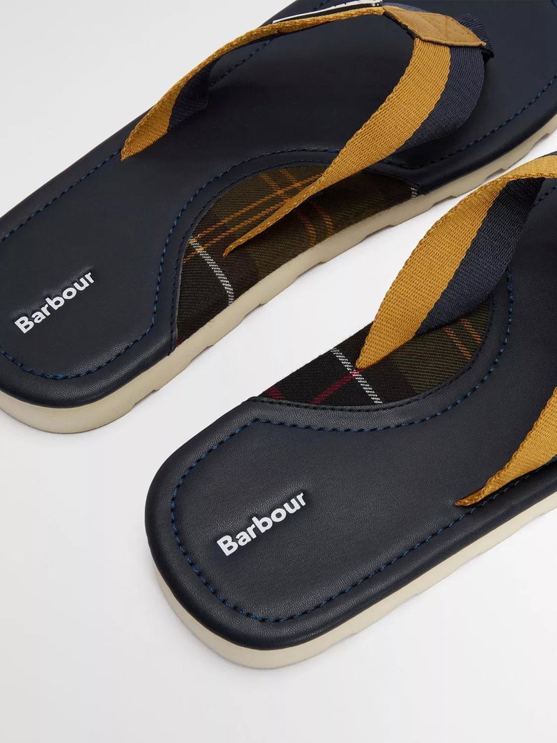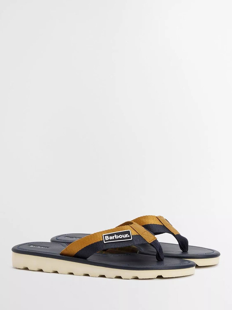 The Barbour Harker sandal is a comfortable toe-post beach sandal with a cleated EVA sole for traction. Featuring a dual-coloured webbing upper and a rubberised Barbour logo on the side, it combines casual heritage-inspired style with practical summer-ready functionality, making it ideal for beach or everyday warm-weather wear.