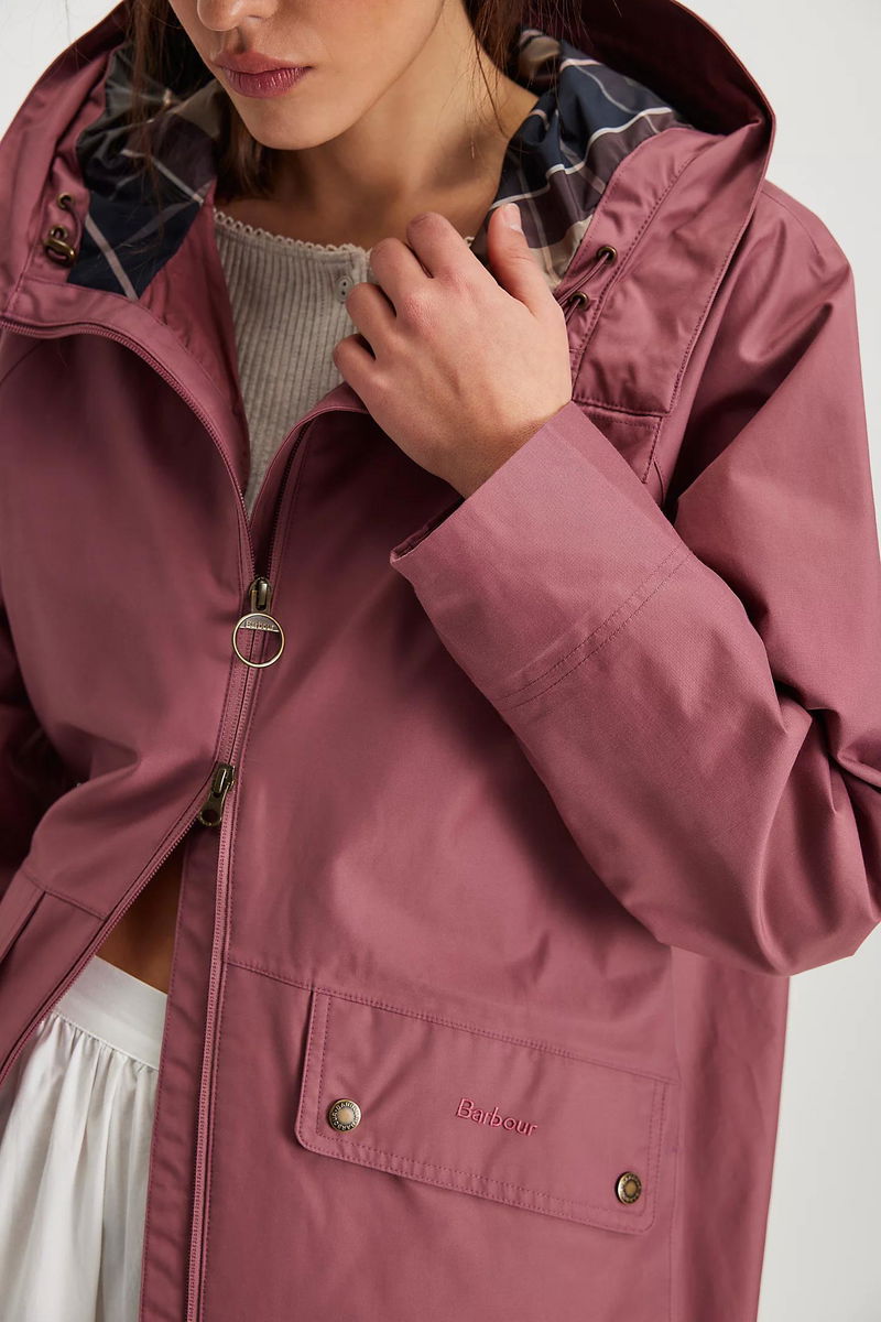 Brave the rain in classic style with this longline coat from Barbour, featured in a waterproof design with their signature tartan lining for a timeless touch.