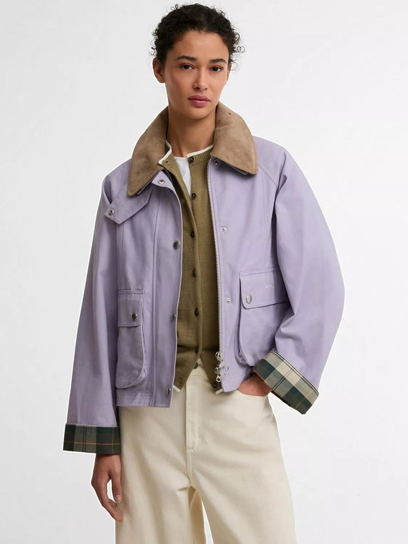 Finished with subtle Barbour embroidery on the pocket flaps, it combines heritage detailing with a playful, cropped silhouette.
