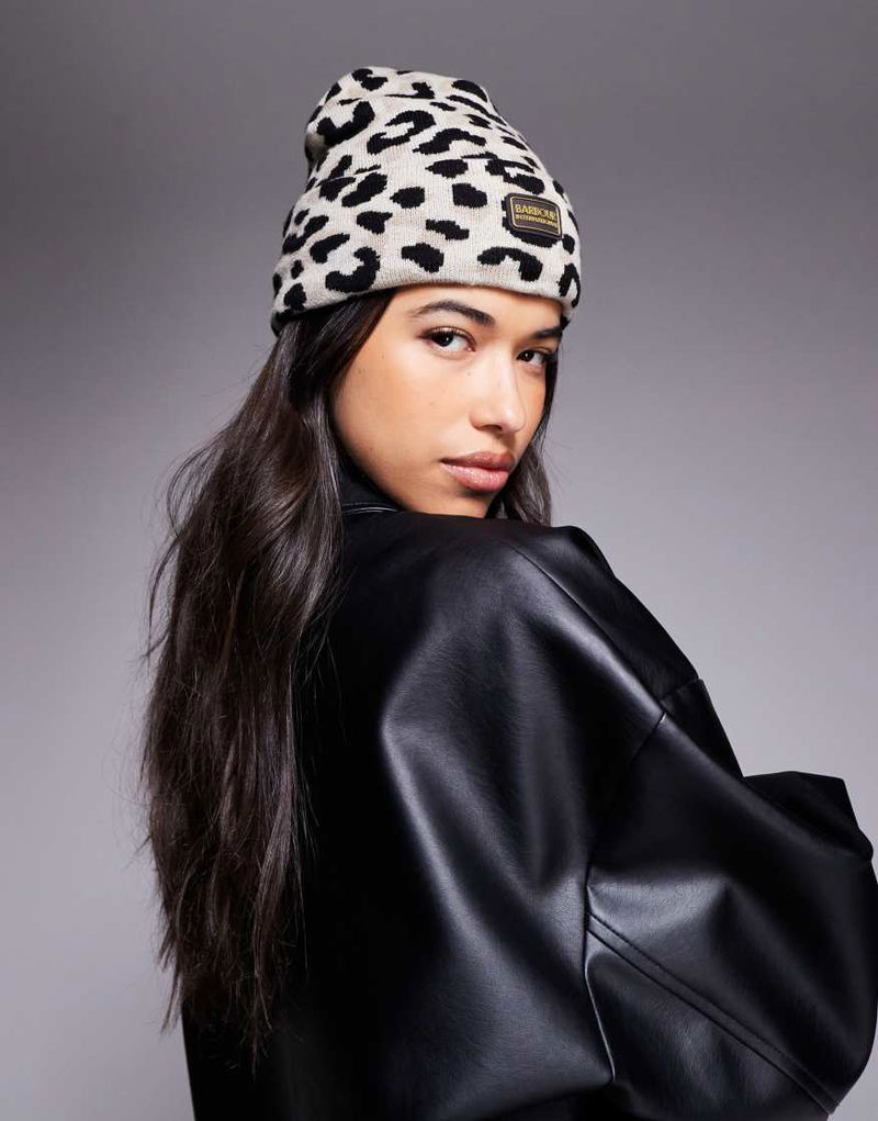 Harley Leopard Beanie Hat In Jasmine Leopard