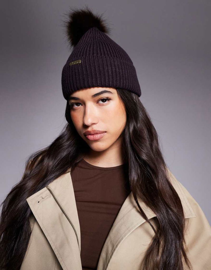 Mallory Pom Beanie Hat In Chocolate