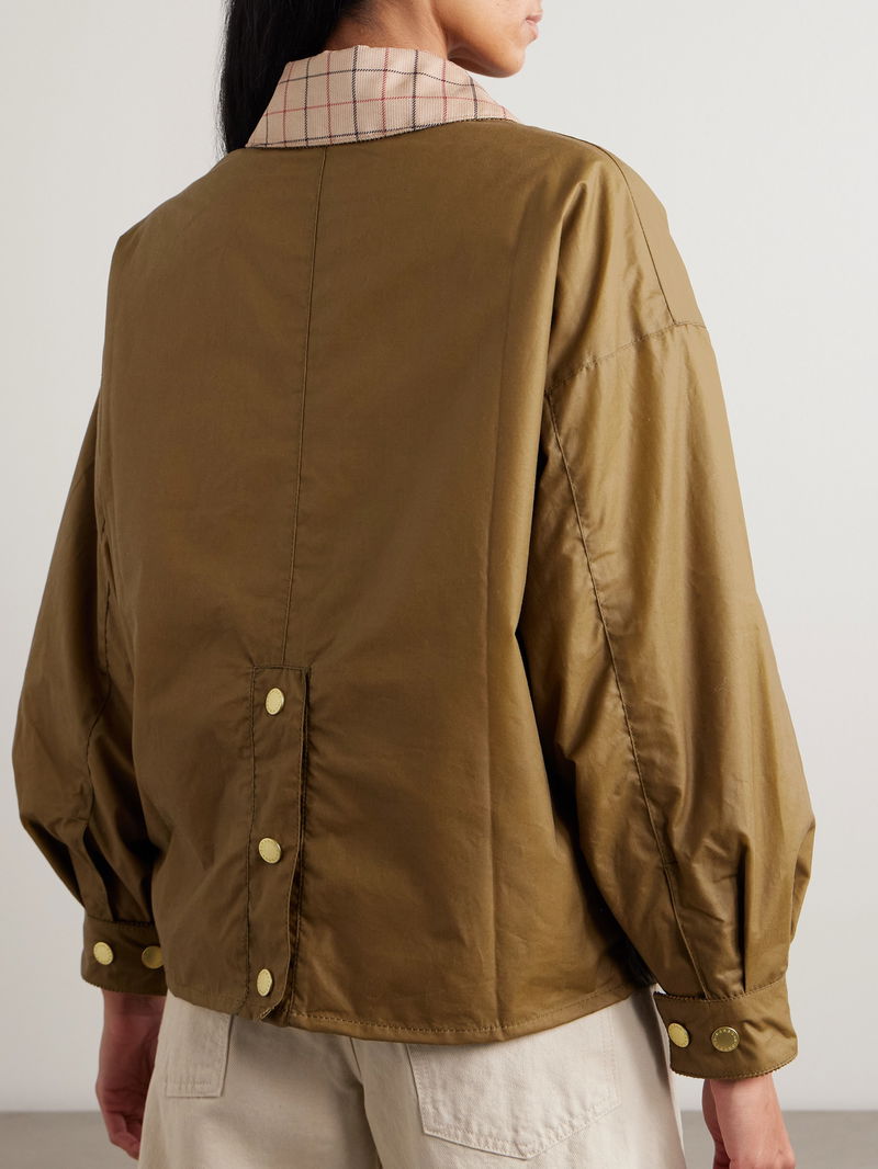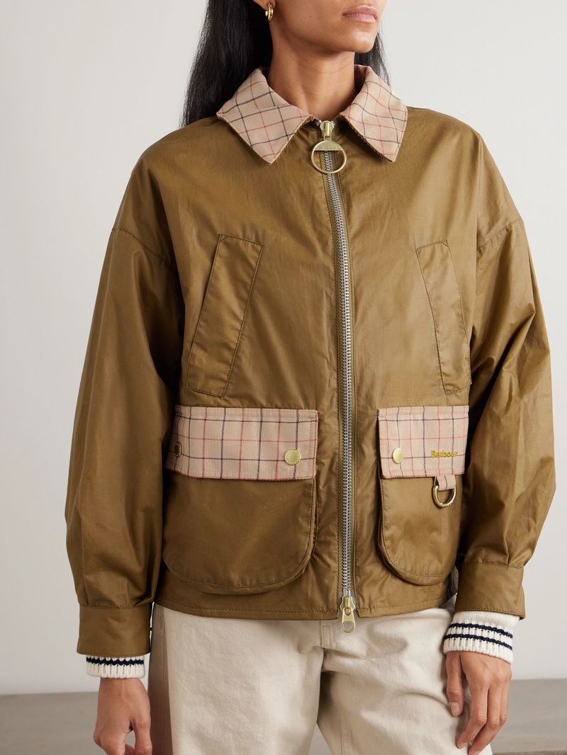 Barbour's 'Launton' jacket nods to classic British style with Tattersall checked corduroy trims at the collar and pockets.