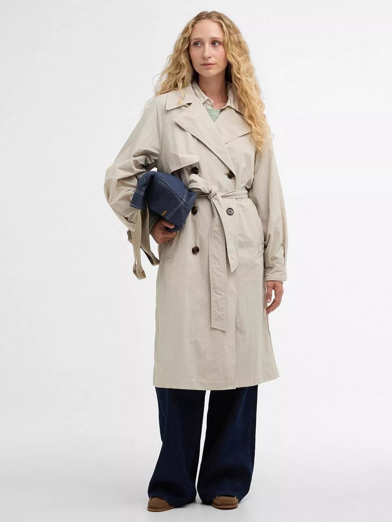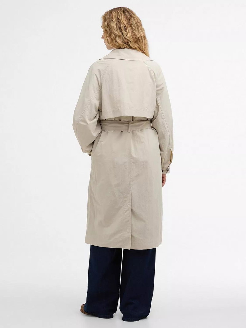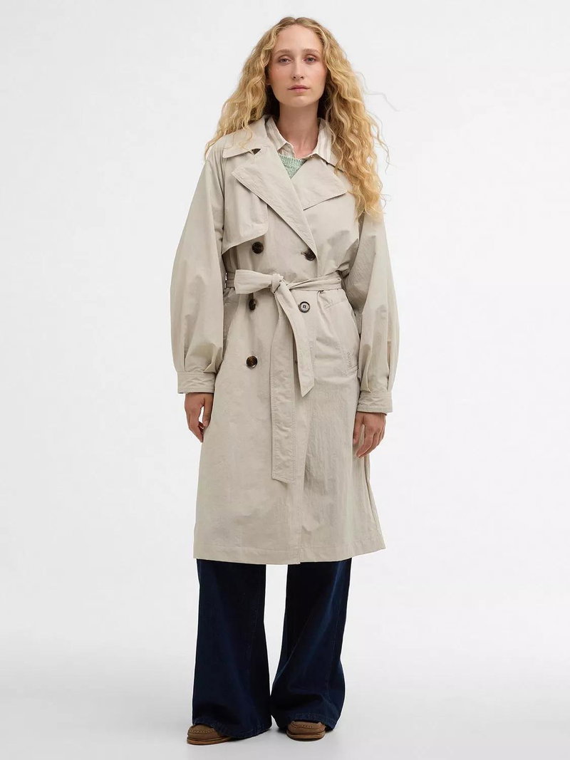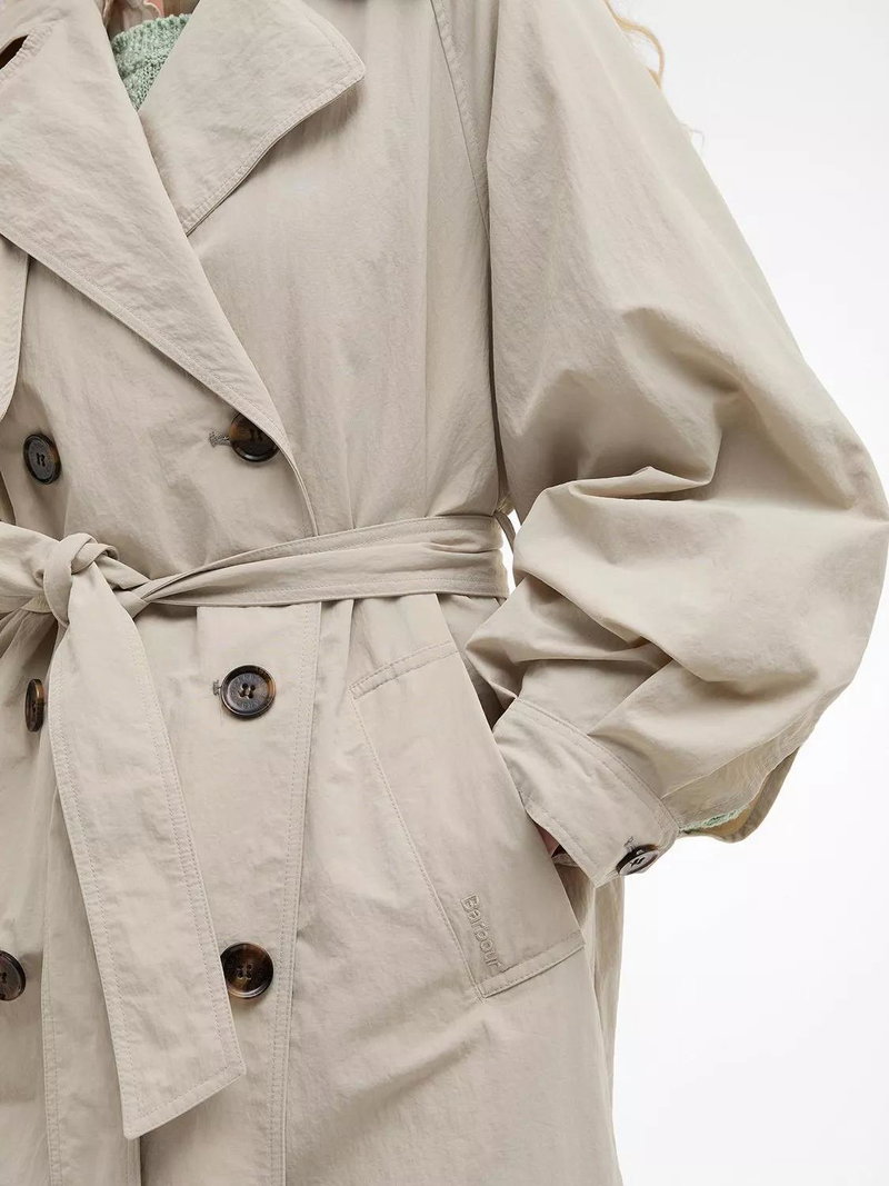 The Barbour Layla Showerproof Trench Coat exudes understated sophistication with its lightweight, double-breasted silhouette. Designed for effortless versatility, it features a self-tie belt that cinches the waist and a sleek button-through front for a timeless finish. Unlined for fluid movement, the style is elevated with a loose tartan back buggy and contrast inner binding—an elegant expression of Barbour's modern heritage.