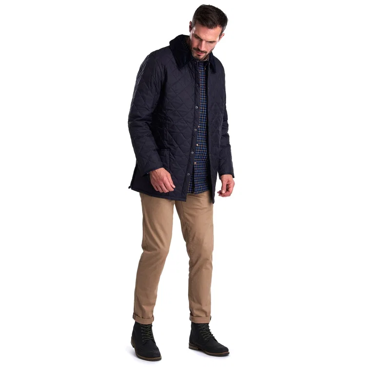 The Liddesdale provides plenty of room for laying and a generous fit, we suggest you go down one size if you prefer to wear this as a summer jacket. One of the most iconic Barbour jackets, the original Liddesdale jacket is a firm favourite year after year. With Barbour's signature diamond quilted outer and a warm yet lightweight contrast nylon lining, this popular men's quilted jacket is durable, simple and stylish. From the Classic collection and available in a range of wearable colours, it features a robust front stud fastening to protect from the elements, and a smart sit-down cord collar that can be raised for additional warmth and protection, with a luxuriously soft feel against the skin. With a generous fit, the Liddesdale provides plenty of room for layering up with chunky knits and insulating gilets, while the studded rear vents ensure comfort and ease of movement. The signature front patch pockets are trimmed with contrast Barbour embroidery and are generously proportioned, while a zipped inner security pocket safeguards valuables. A timeless addition to any winter wardrobe.