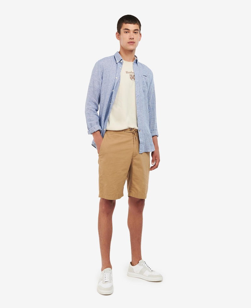 Exuding contemporary refinement, this tailored-fit shirt is crafted from 100% linen in a micro houndstooth weave with a soft finish. This long-sleeved garment is simply detailed with a button-down collar and a branded Barbour flag to the side seam.