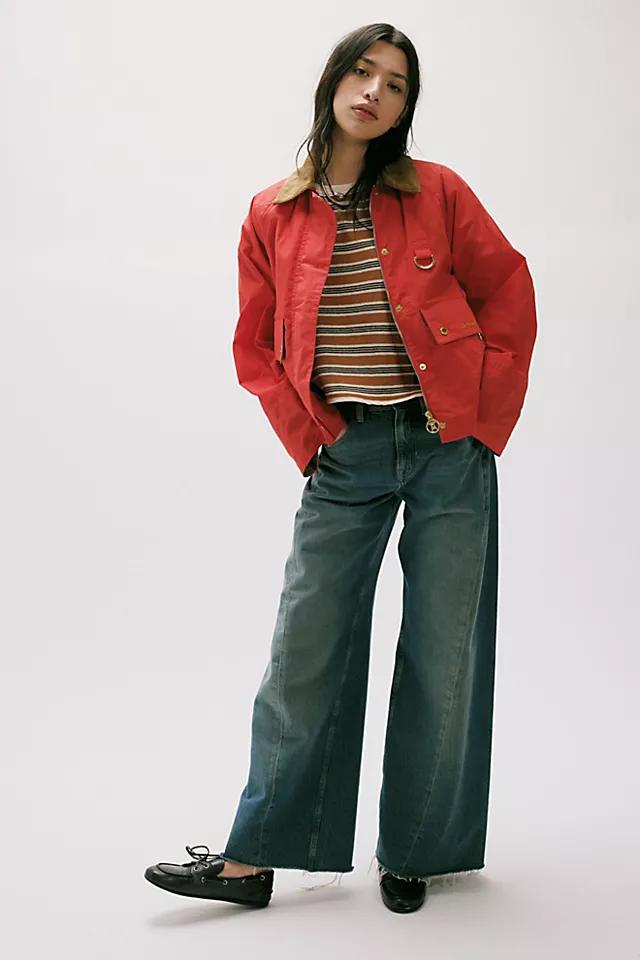 So classic, this vintage-inspired jacket from Barbour features a timeless, tailored silhouette, a lightweight cotton fabrication, and a tartan lining for a quintessentially heritage design.