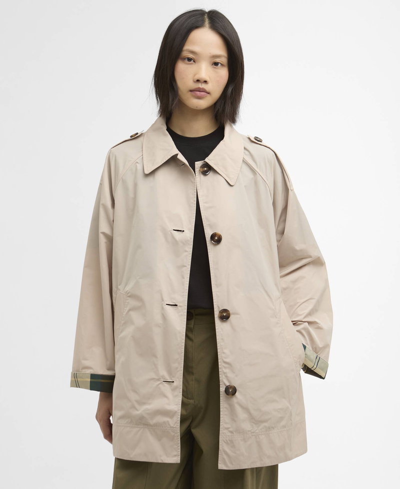 Unlined for a lightweight feel, it includes a tartan buggy, under-collar, and cuff for a signature Barbour touch. With its relaxed fit, this mac is perfect for layering on rainy days.